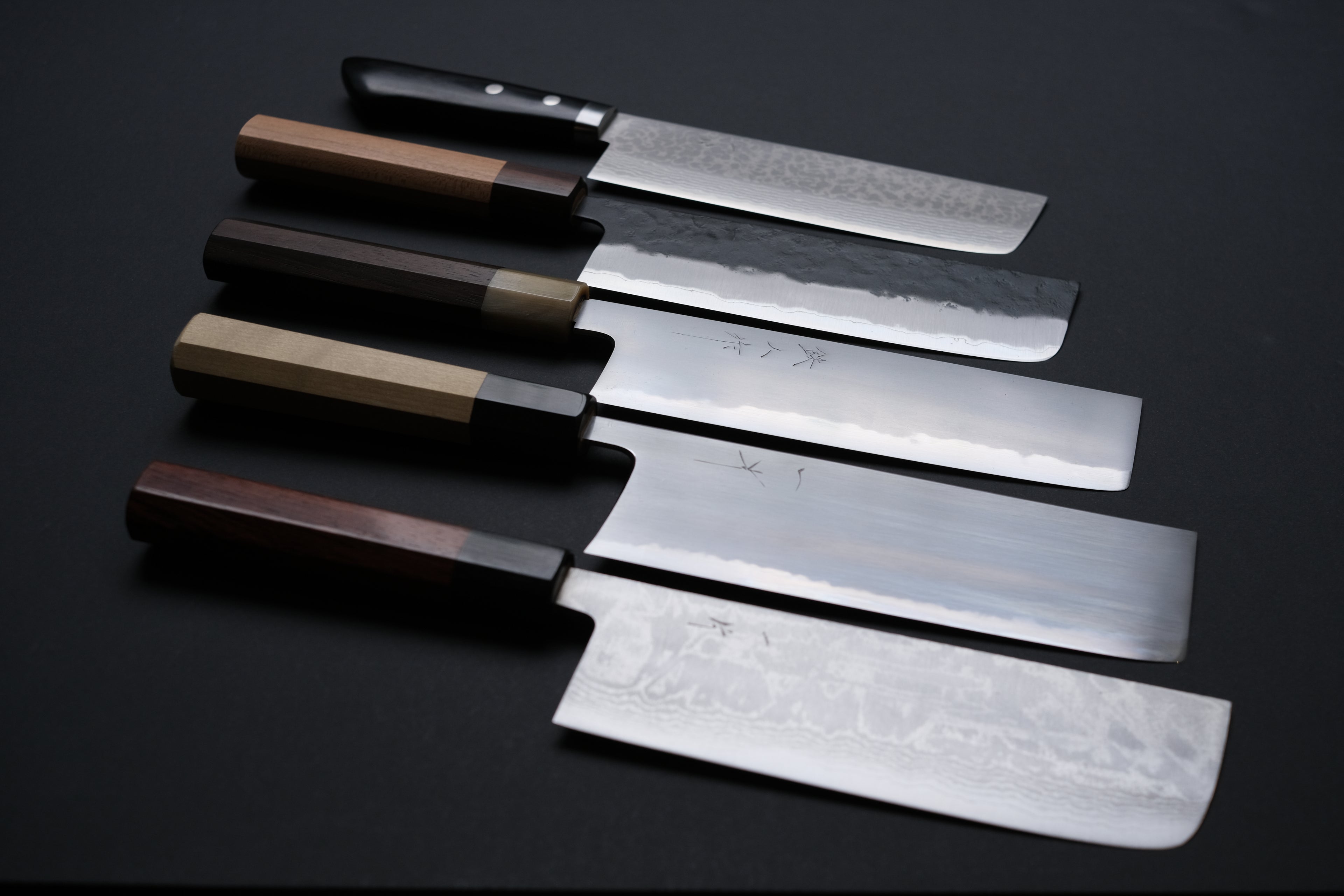 The classic vegetable knife. Highly functional for processing large amounts of vegetables and preforming finer cutting tasks such as julienne of brunoise. The absence of a pronounced belly in the profile orientates it more towards chopping style cutting motions rather than rolling cuts.