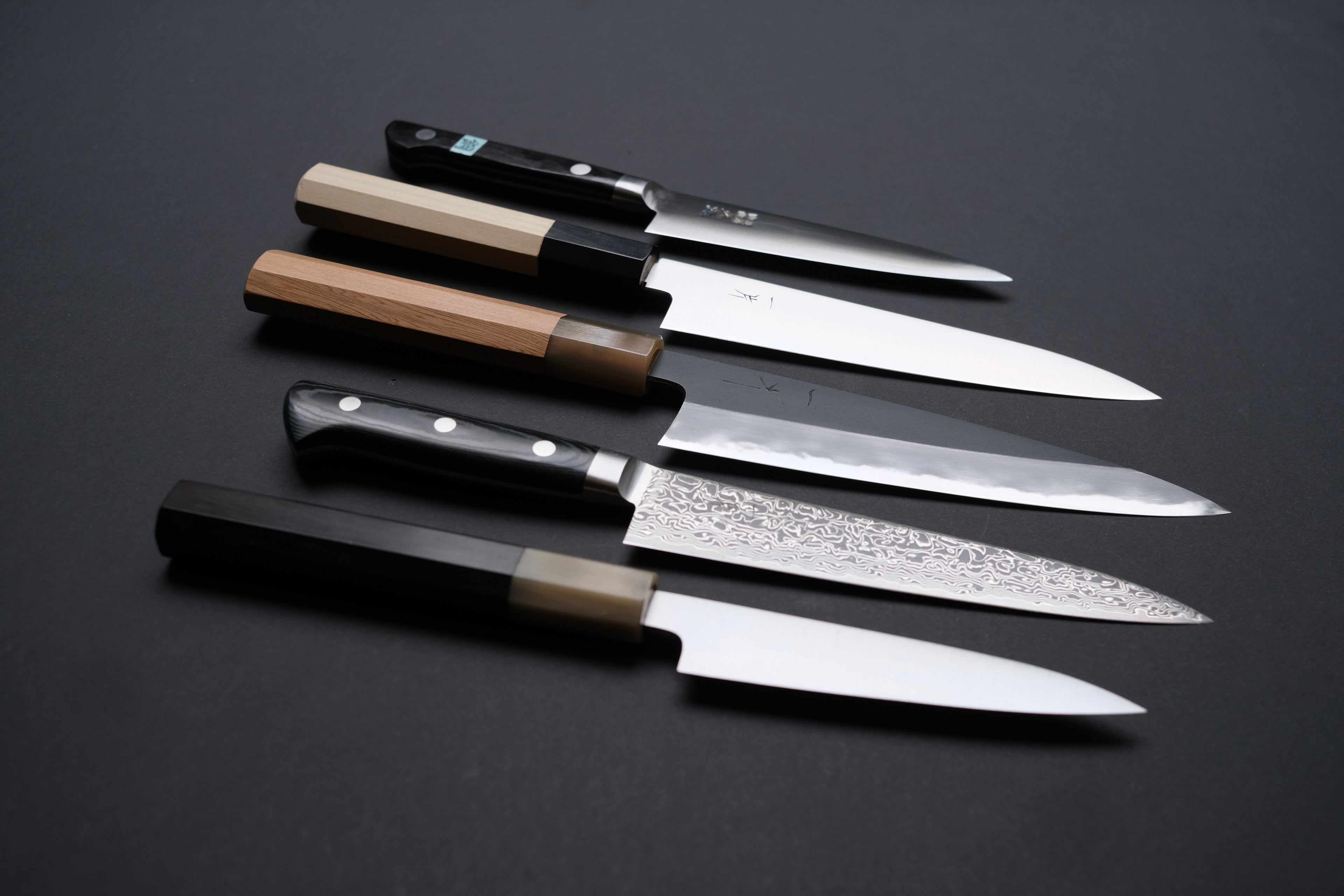 Petty knives (Utilty) have a similar profile as the gyuto but smaller, commonly ranging from 12 to 15cm. A shape most often used next to any larger all-purpose blade (gyuto & santoku) although there are many households where this is the go-to knife. Very suitable for the smaller cutting tasks such as cleaning, portioning and peeling fruits and vegetables and cleaning smaller cuts of meat or fish.