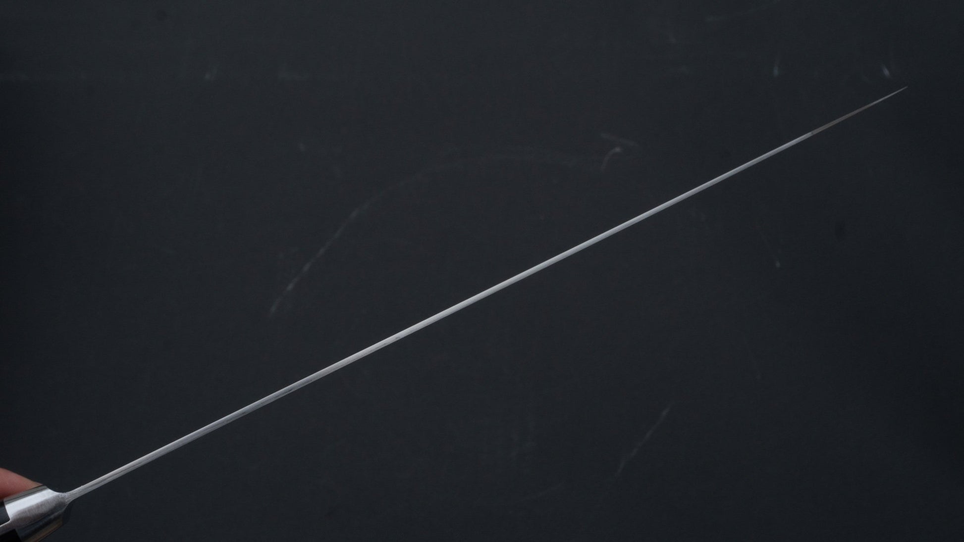 The Japanese slicer. A more specific knife shape ideal for portioning, trimming and finely slicing large cuts of meat, roasts, poultry or fish. Most are symmetrically ground but please check the orientation in the description as some western style Sujihiki are asymmetric.