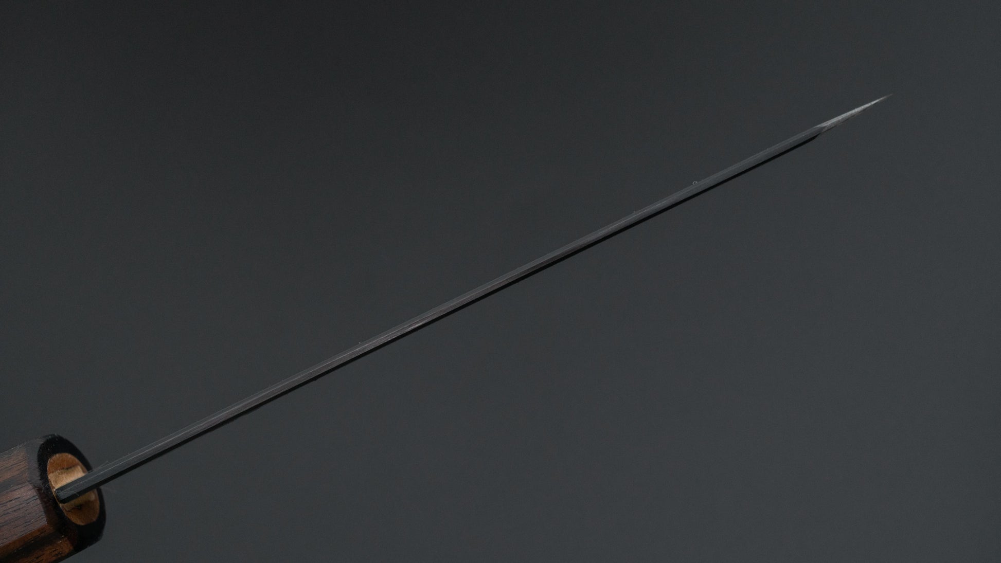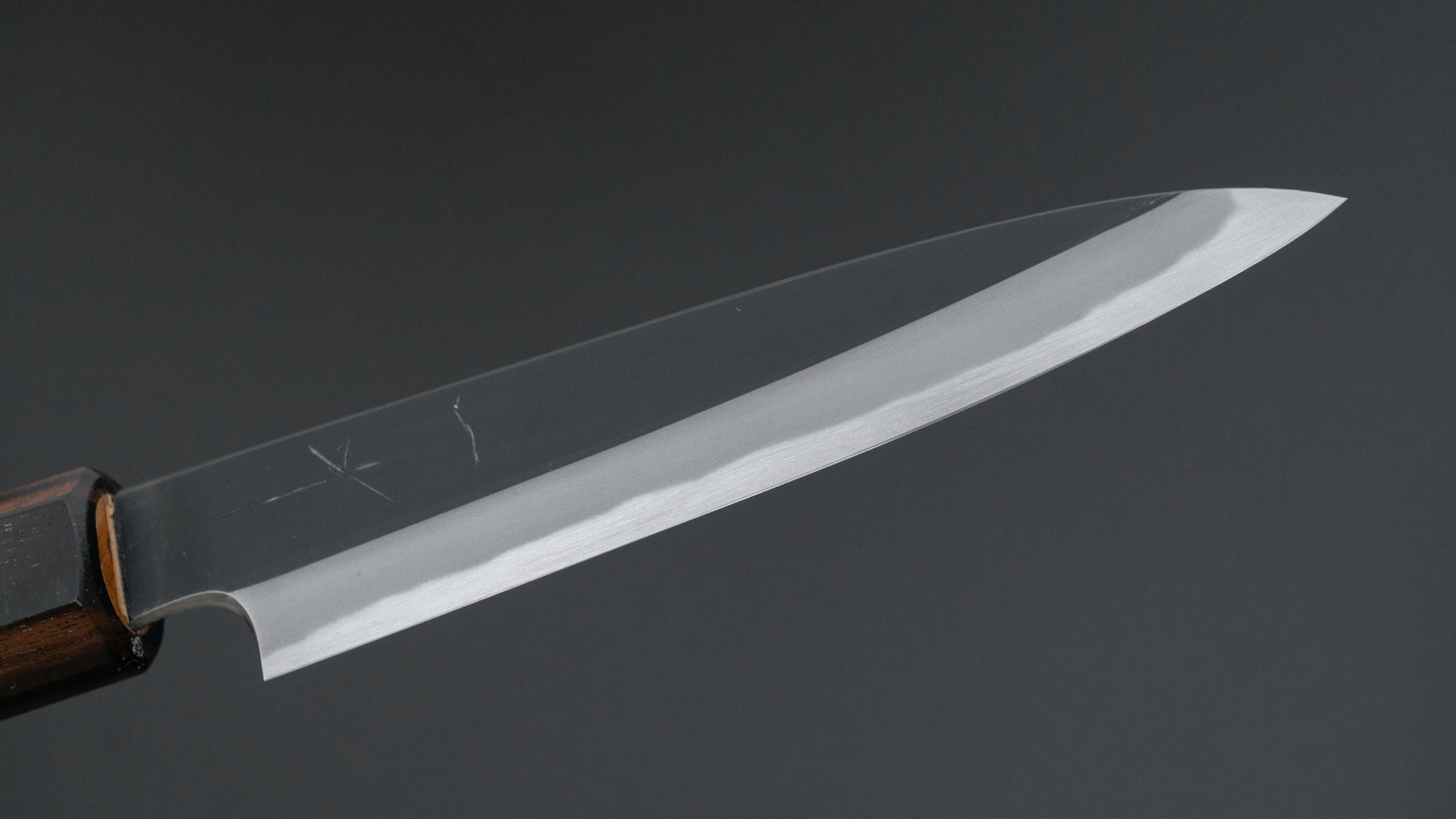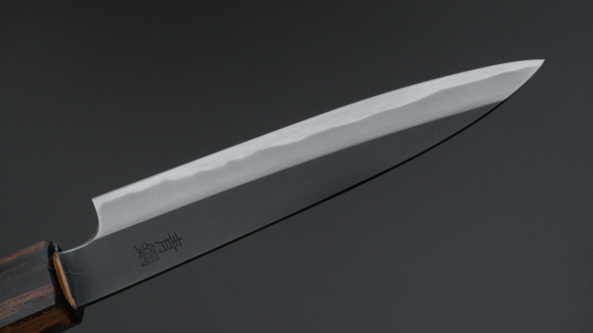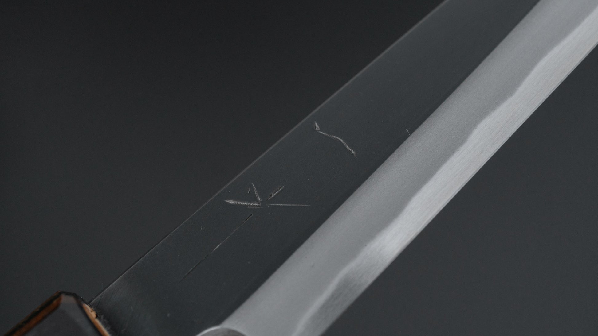 This is a carbon steel knife. Carbon steel is a non-stainless steel that lacks sufficient chromium and/or nickel to protect it from oxidation. As a result, it reacts to moisture and oxygen. While this may sound like a downside, it’s actually a key feature. Carbon steel forms a unique patina over time, is easy to sharpen, and offers excellent edge retention.