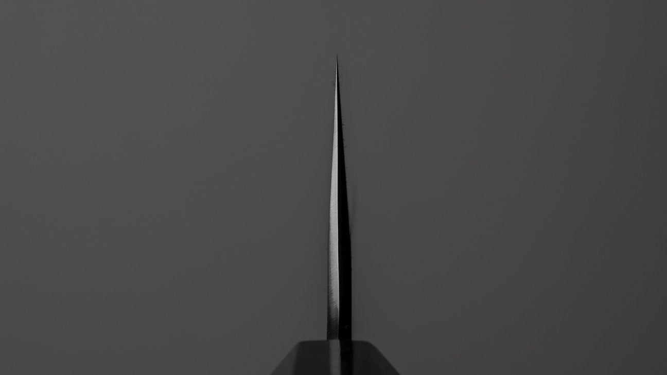 Kyuzo is a sharpener from Sakai. Son of one of the busiest sharpeners in this region and student of one of the most legendary and influential sharpeners. His style is a combination of these two teachings and is most known for this wide-bevel sharpening with a crisp and visible shinogi line. An extremely challenging way of grinding where symmetry is the most important factor. Kyuzo’s blades are characterized by their exceptional cutting performance and easy to maintain bevels. These pronounced wide bevels are easy to follow when thinning the blade resulting in better performance over time. In addition to the high level grind and sharpening these knives feature comfortably chamfered spine and choil increasing the overall quality of the blade.