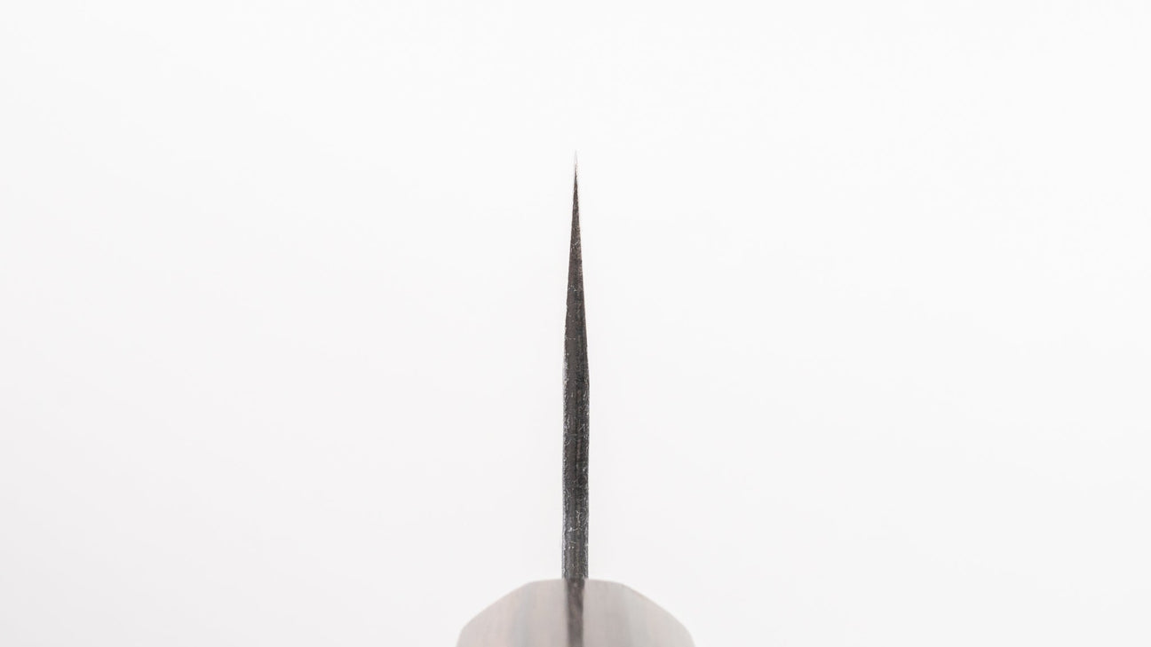 The Santoku is every bit as versatile as a Gyuto, but it’s more at home in everyday cooking. Probably the most used to-go knife at home. It’s easy to handle, super nimble, and great for just about any kitchen task.