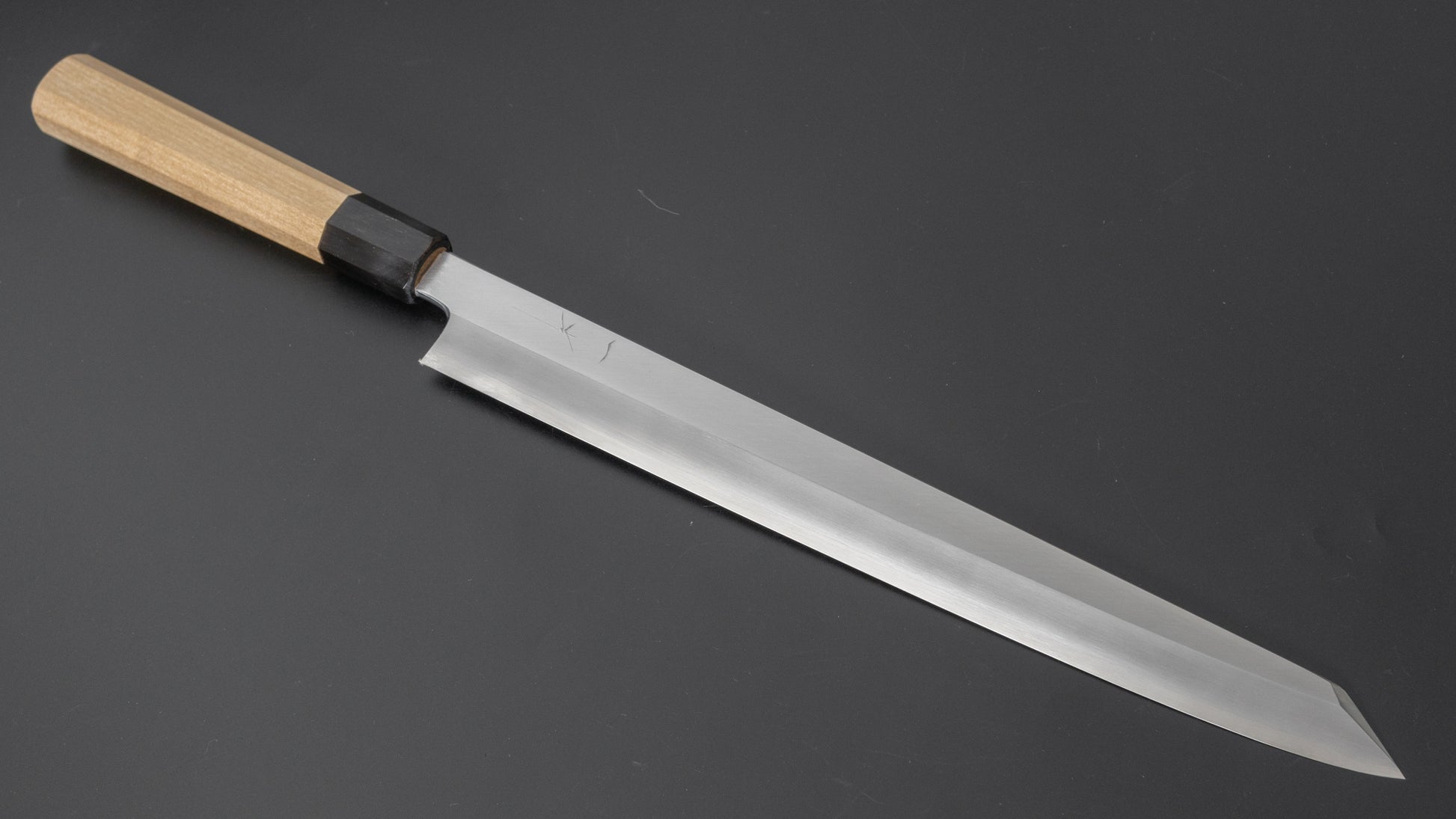 The traditional Japanese slicer. The king of knives and ofter referred to as ’Sushi knife’ it is used for slicing boneless protein. More specific and less versatile compared to the Sujihiki, the performance of the properly sharpened Yanagiba will yield much higher quality results due to their geometry and sharpness. Characteristics in steel are pronounced in single bevel knives and different sharpeners make for much variety.