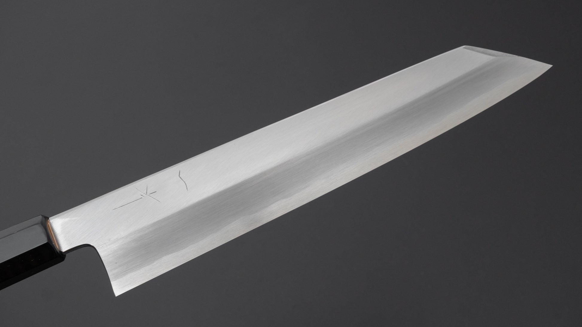 The traditional Japanese slicer. The king of knives and ofter referred to as ’Sushi knife’ it is used for slicing boneless protein. More specific and less versatile compared to the Sujihiki, the performance of the properly sharpened Yanagiba will yield much higher quality results due to their geometry and sharpness. Characteristics in steel are pronounced in single bevel knives and different sharpeners make for much variety.