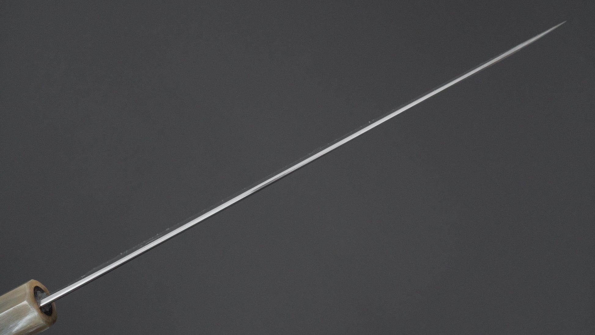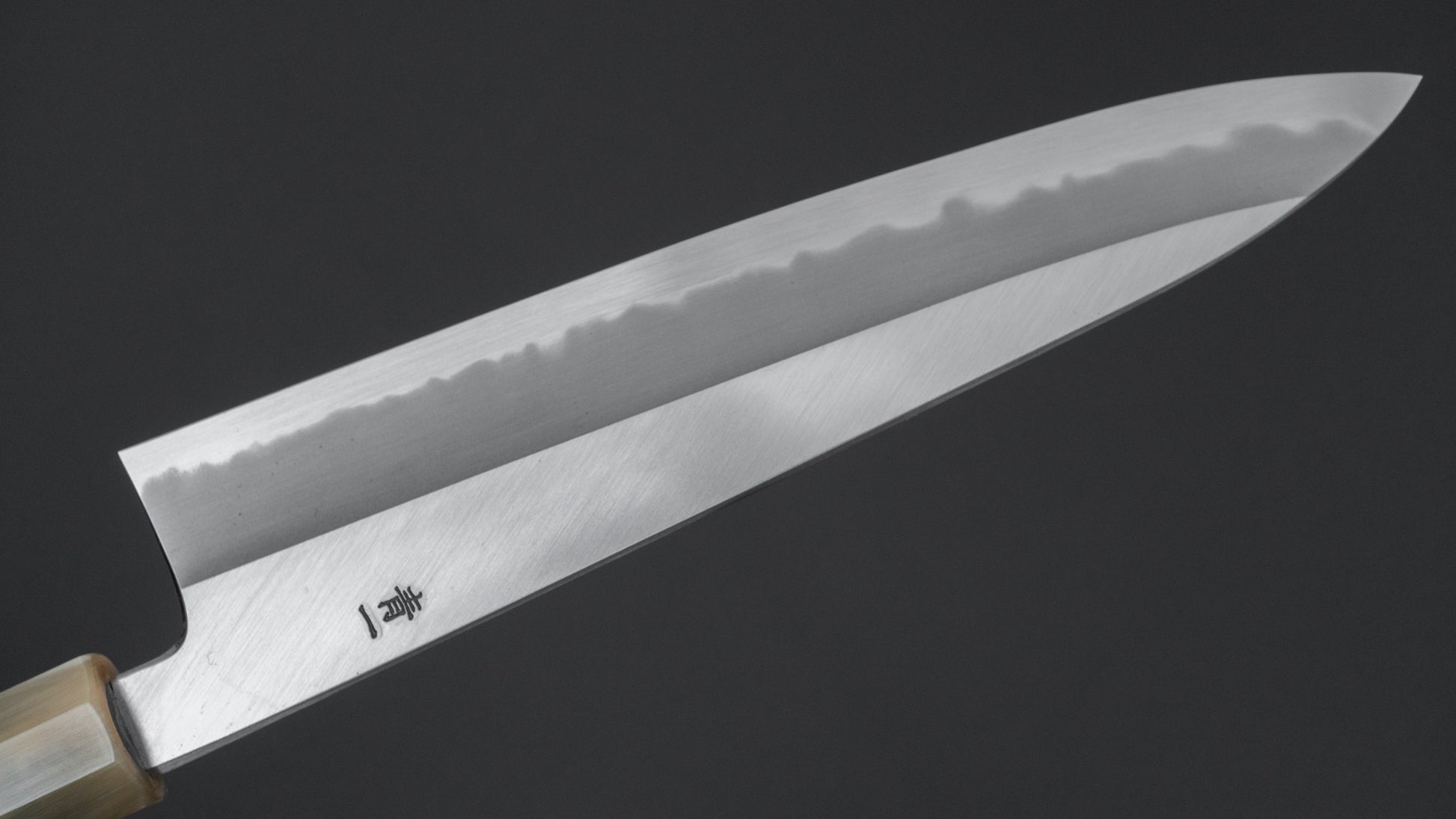 Kyuzo is a sharpener from Sakai. Son of one of the busiest sharpeners in this region and student of one of the most legendary and influential sharpeners. His style is a combination of these two teachings and is most known for this wide-bevel sharpening with a crisp and visible shinogi line. An extremely challenging way of grinding where symmetry is the most important factor. Kyuzo’s blades are characterized by their exceptional cutting performance and easy to maintain bevels. These pronounced wide bevels are easy to follow when thinning the blade resulting in better performance over time. In addition to the high level grind and sharpening these knives feature comfortably chamfered spine and choil increasing the overall quality of the blade.