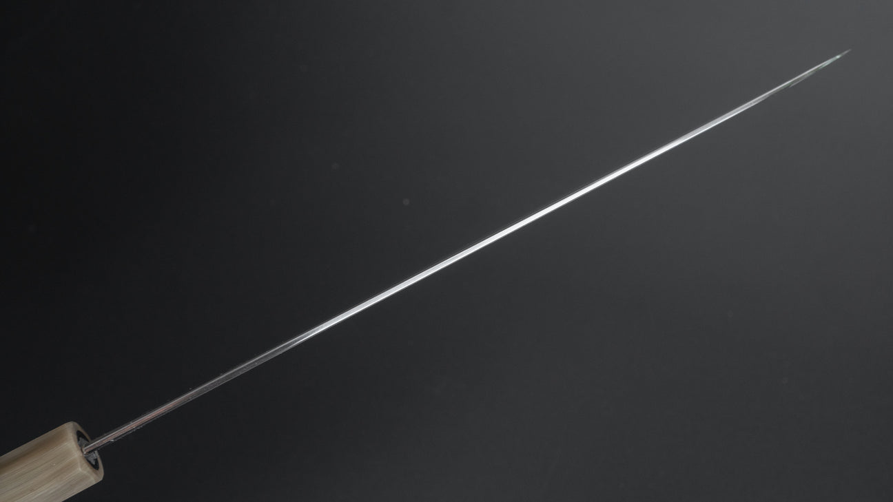 Tanaka Uchihamono is one of Sakai’s leading and most renowned forgeries, producing high quality single- and double bevel knives for over decades. Internationally famed for his Blue #1 because of it’s excellent edge retention and sharpening ease. Tanaka Uchihamono’s methods are very traditional: using only carbon steel, relying only on eyesight to determine steel temperatures, using pine charcoal in the forge and straw ash for annealing and normalizing cycles ect. It is in these techniques the Tanaka forgery show incredible skill and mastery of temperatures, steel and knowledge that creates their celebrated quality. Tanaka forged knives paired with some of Sakai’s best sharpeners and the Hitohira touch make these some of the finest blades we see. In the west Tanaka gyutos are most desired and sought after while this workshop has been making some of Japan’s highest single bevel knives for many years.