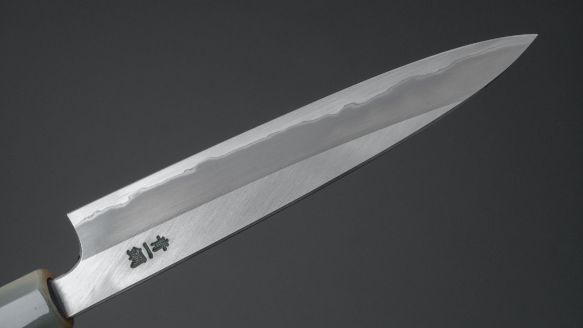Master Kenji Togashi is one of the most celebrated and distiguisted blacksmith from Sakai. Not only a “Dentokogeshi” (certified traditional craftsman) but also awarded with a medal from the emperor for his accomplishments and service. One of the, if not the, most honourable and prestigious decorations in Japan. To be awarded such a prestigious titles is proof of vast knowledge and skill. He is amongst the very few remaining blacksmiths in Japan with the skillset to forge water-quenched Honyaki blades. A true master of traditional techniques. Togashi made knives are characterised by their durability and hardness while still easy to sharpen. Not only the steel quality but also their in-house sharpening is praiseworthy. In charge of the in-house sharpening is Kenya Togashi, the third son of Togashi San, and from him we see some of the most true and consistent single and double-bevel sharpening we've come across. All their knives really feel like they've been made with the intention to last for years.