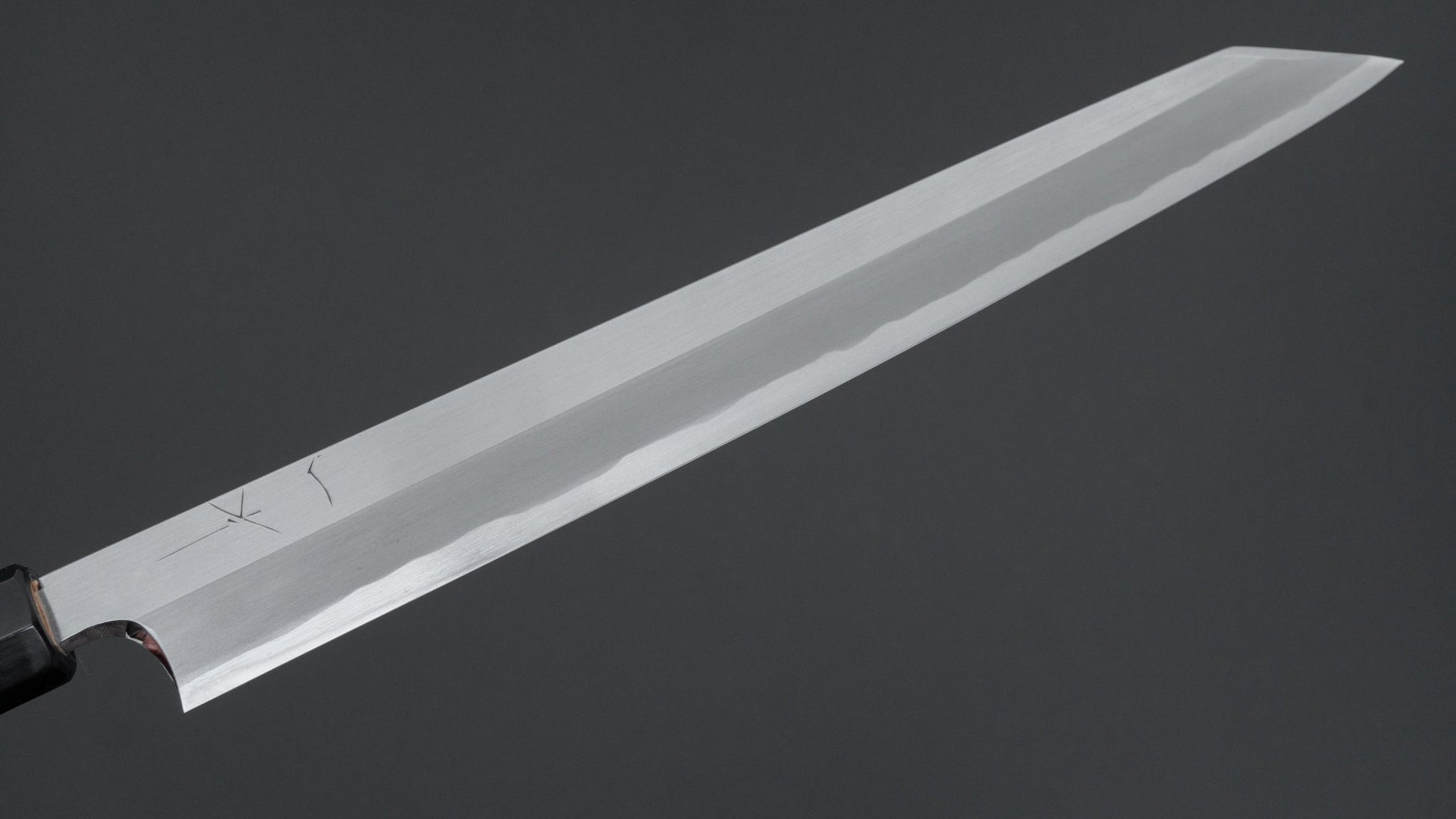 The traditional Japanese slicer. The king of knives and ofter referred to as ’Sushi knife’ it is used for slicing boneless protein. More specific and less versatile compared to the Sujihiki, the performance of the properly sharpened Yanagiba will yield much higher quality results due to their geometry and sharpness. Characteristics in steel are pronounced in single bevel knives and different sharpeners make for much variety.