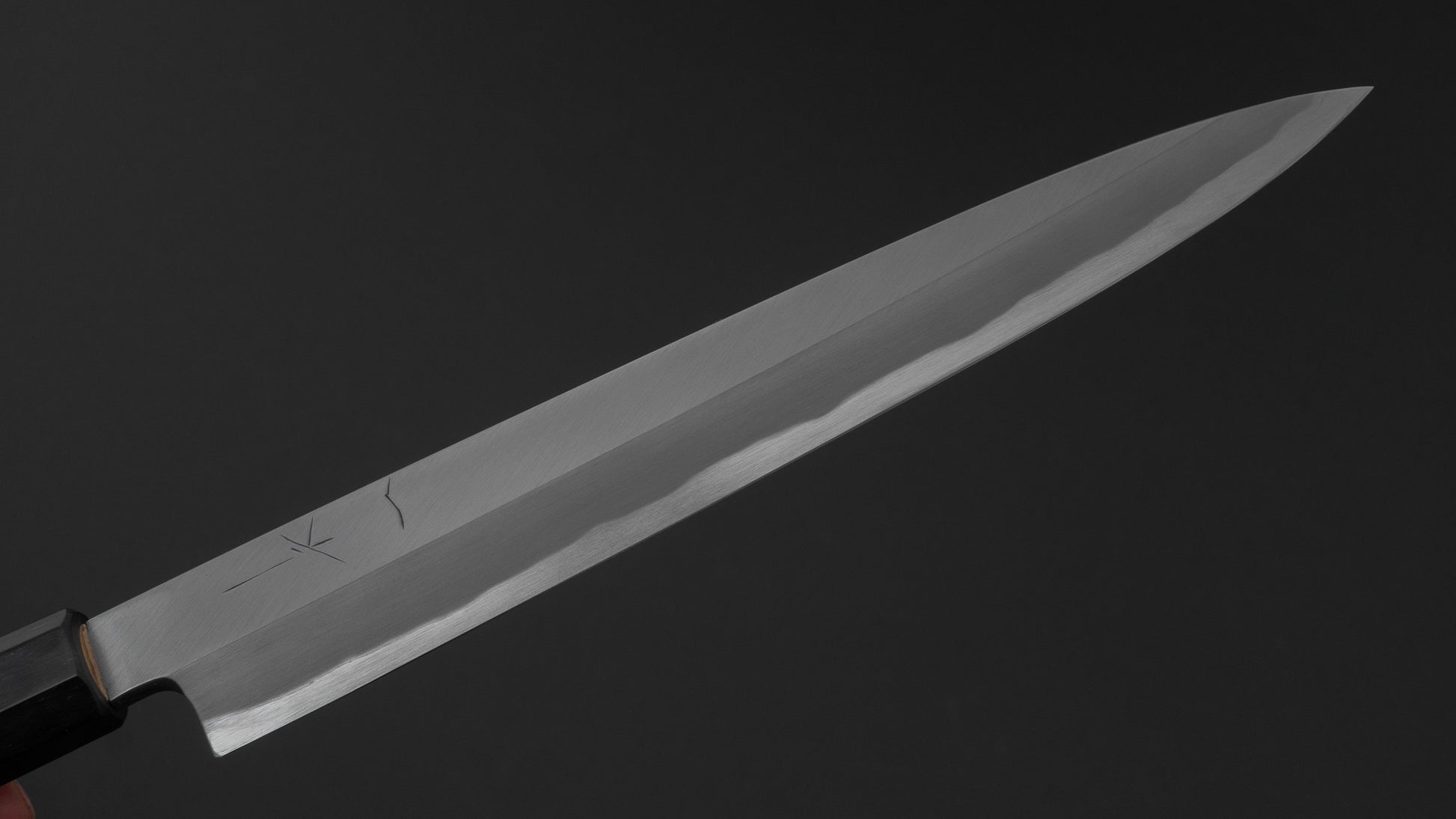 The traditional Japanese slicer. The king of knives and ofter referred to as ’Sushi knife’ it is used for slicing boneless protein. More specific and less versatile compared to the Sujihiki, the performance of the properly sharpened Yanagiba will yield much higher quality results due to their geometry and sharpness. Characteristics in steel are pronounced in single bevel knives and different sharpeners make for much variety.