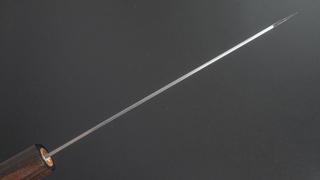 The Santoku is every bit as versatile as a Gyuto, but it’s more at home in everyday cooking. Probably the most used to-go knife at home. It’s easy to handle, super nimble, and great for just about any kitchen task.