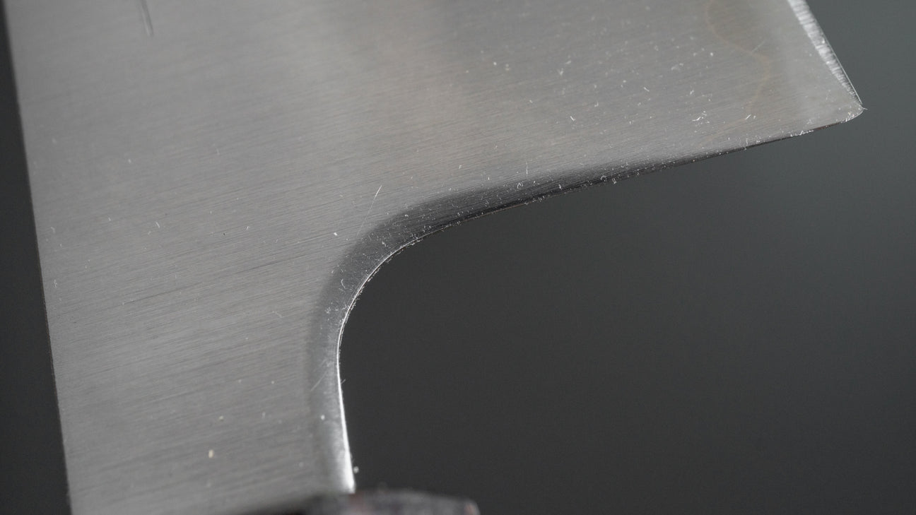 The other SB finishes, such as Nashiji and Tsuchime, have wider bevels and slightly thicker spines, which lend the knives more strength and stability. While these models still perform excellently, their slightly more robust design makes them suitable for heavier or more varied tasks.