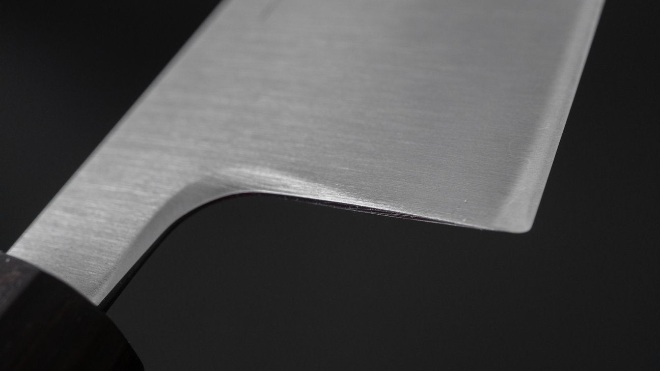 The other SB finishes, such as Nashiji and Tsuchime, have wider bevels and slightly thicker spines, which lend the knives more strength and stability. While these models still perform excellently, their slightly more robust design makes them suitable for heavier or more varied tasks.