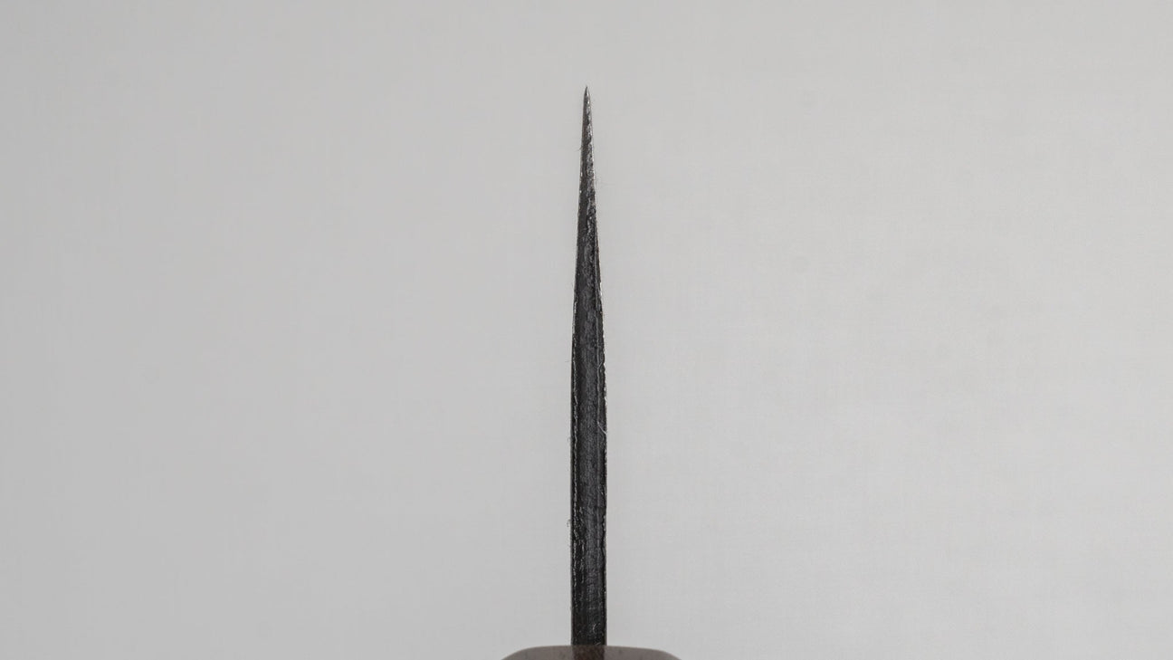 The Santoku is every bit as versatile as a Gyuto, but it’s more at home in everyday cooking. Probably the most used to-go knife at home. It’s easy to handle, super nimble, and great for just about any kitchen task.