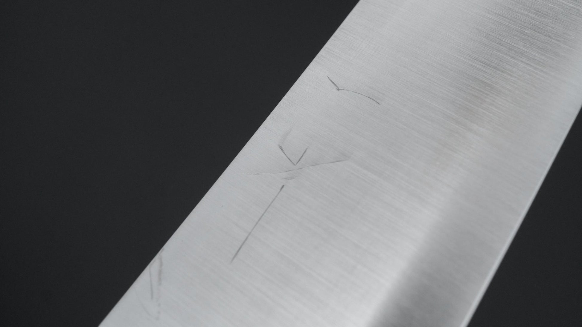 Ashi Hamono, a legendary company based in Sakai. Famed for their mono style and convex grind, Ashi Hamono knives are synonymous with smooth cutting performance. Ashi produces blades from a single piece of steel, known as mono steel knives. It makes for very reliable and strong knives with a very solid feeling. It is true that mono steel knives cannot be hardened to the levels of a San Mai (core-steel w/ cladding construction) knives but Ashi makes up for that with their first-class heat treatment and their superior convex sharpening. Convex sharpening is where the bevels are more rounded instead of flat, minimizing contact between product and blade. This grind, and especially on Ashi level, ensures a smooth cutting performance even when the edge gradually dulls.