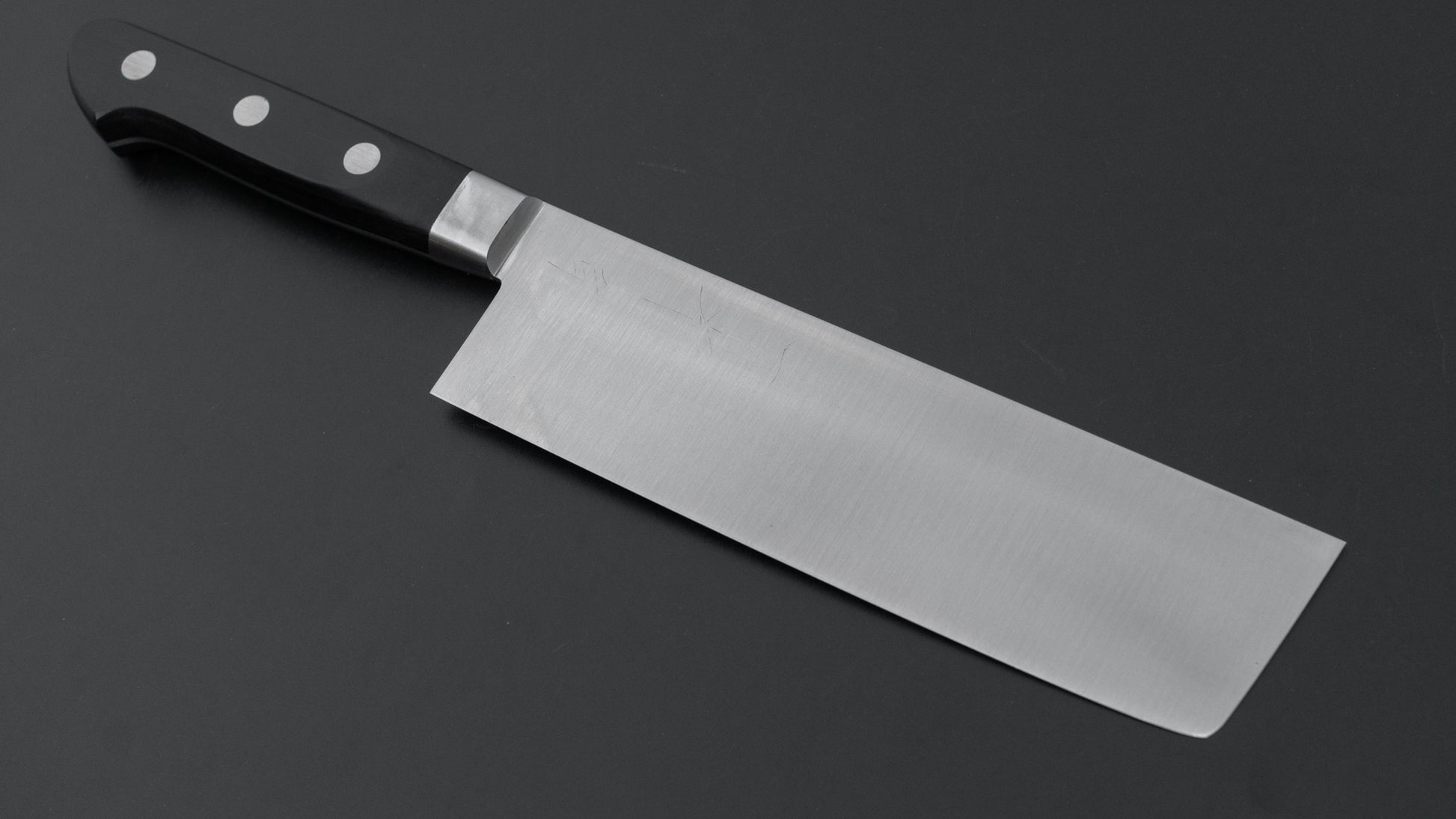 The classic vegetable knife. Highly functional for processing large amounts of vegetables and preforming finer cutting tasks such as julienne of brunoise. The absence of a pronounced belly in the profile orientates it more towards chopping style cutting motions rather than rolling cuts.