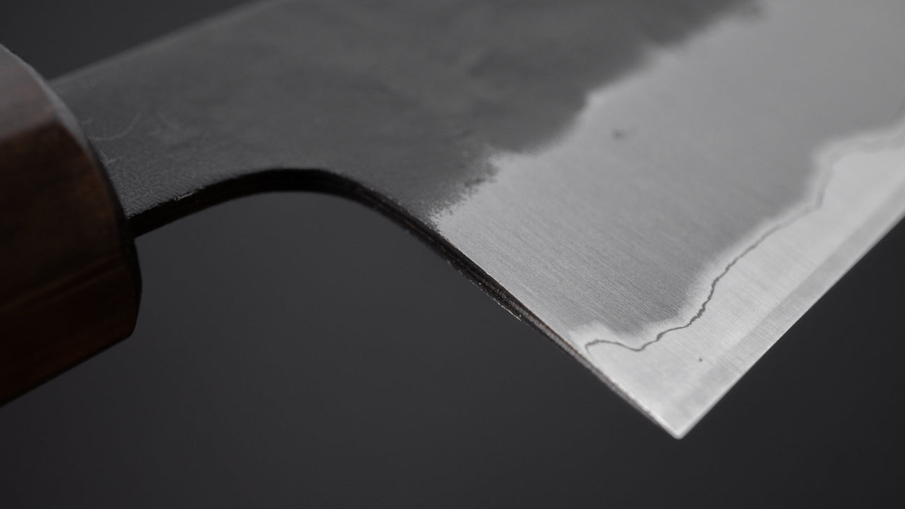 The other SB finishes, such as Nashiji and Tsuchime, have wider bevels and slightly thicker spines, which lend the knives more strength and stability. While these models still perform excellently, their slightly more robust design makes them suitable for heavier or more varied tasks.