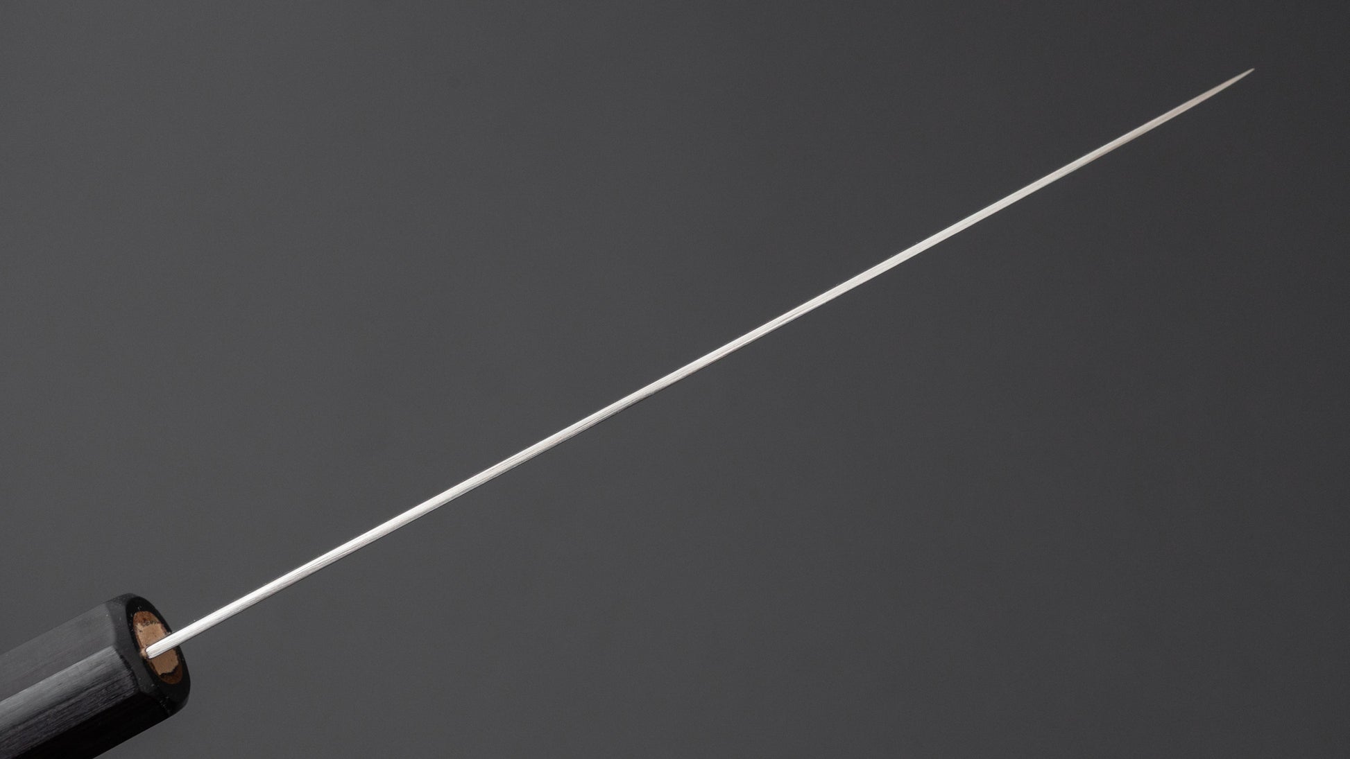 Petty knives (Utilty) have a similar profile as the Gyuto but smaller, commonly ranging from 12 to 15cm. A shape most often used next to any larger all-purpose blade (gyuto & santoku) although there are many households where this is the go-to knife. Very suitable for the smaller cutting tasks such as cleaning, portioning and peeling fruits and vegetables and cleaning smaller cuts of meat or fish.