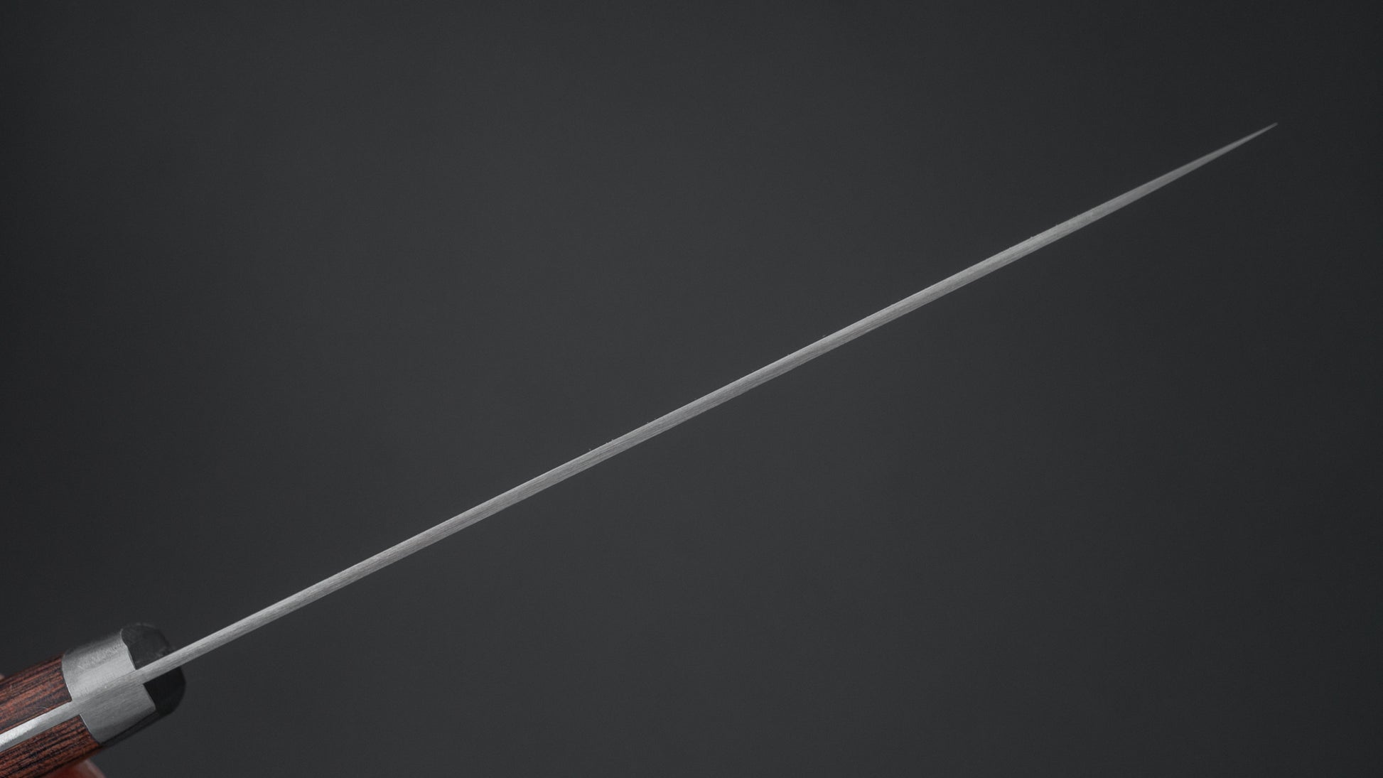 Petty knives (Utilty) have a similar profile as the Gyuto but smaller, commonly ranging from 12 to 15cm. A shape most often used next to any larger all-purpose blade (gyuto & santoku) although there are many households where this is the go-to knife. Very suitable for the smaller cutting tasks such as cleaning, portioning and peeling fruits and vegetables and cleaning smaller cuts of meat or fish.