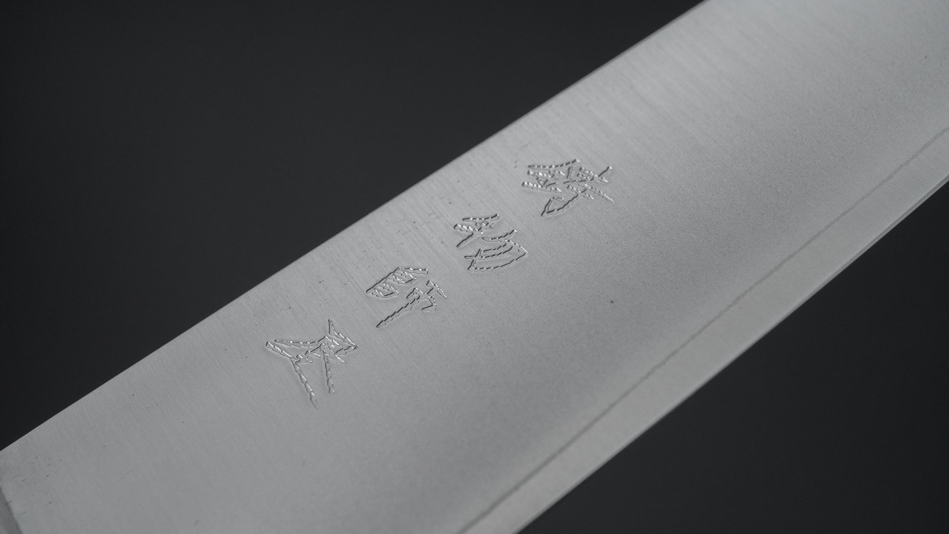 This is a stainless steel knife. Stainless steel gets its name from the inclusion of chromium (10-13%) in the alloy, which forms a protective film that helps prevent rust and corrosion by acting as a barrier between the metal and oxygen. While stainless steel knives are practical, functional, and easier to maintain than carbon steel, they are not completely maintenance-free. With improper care, they can still rust or develop pitting—after all, "stainless" does not mean "stain-free."