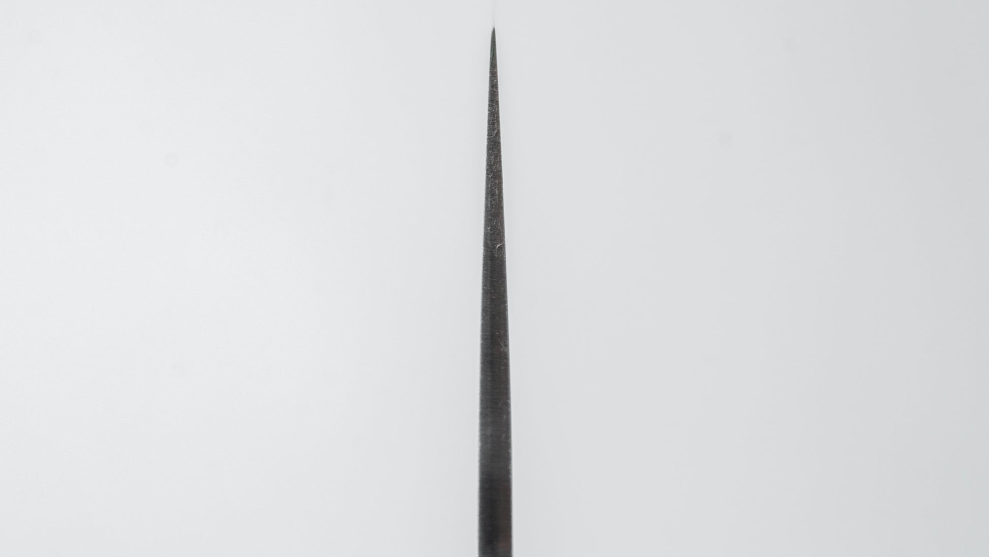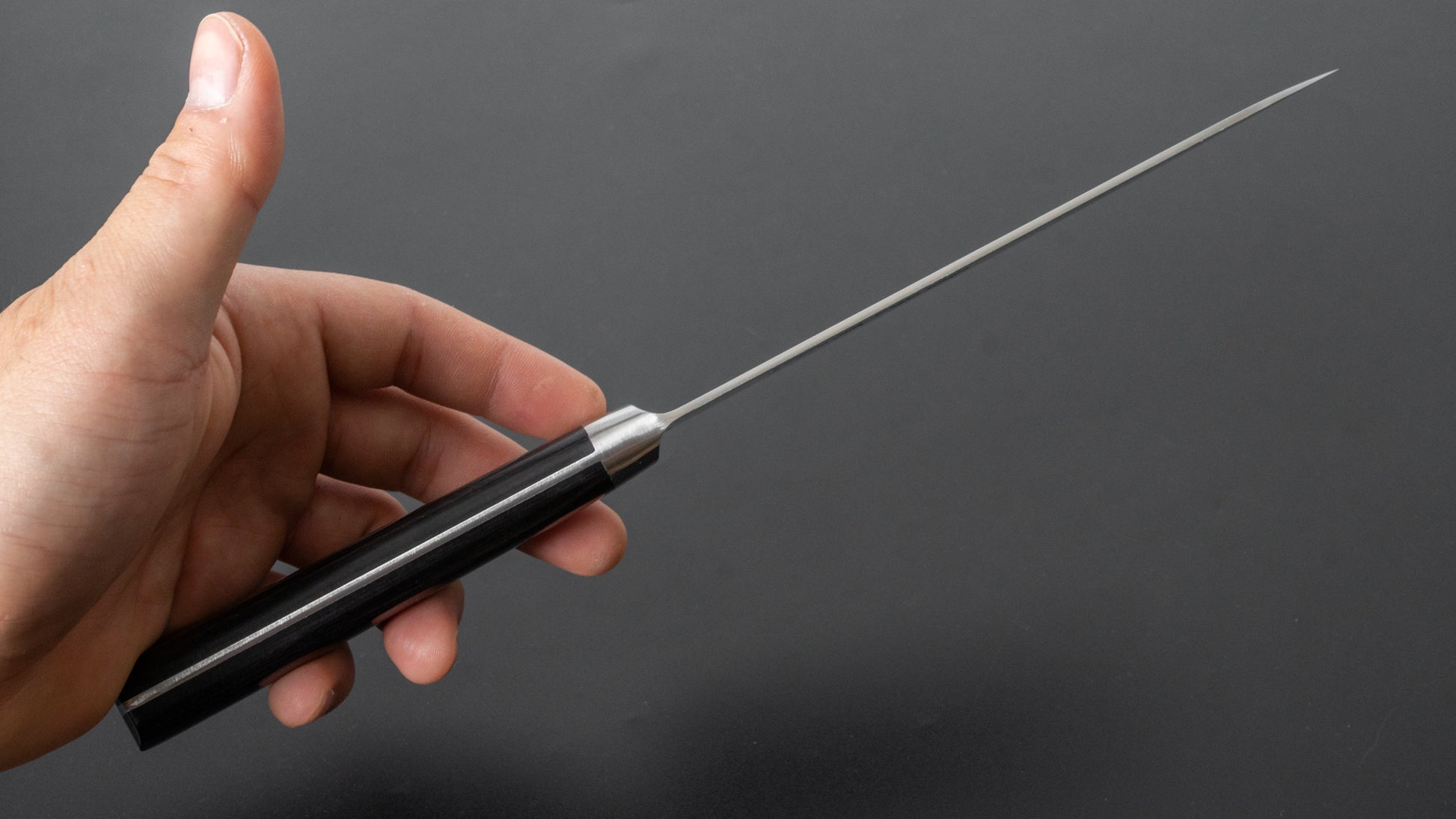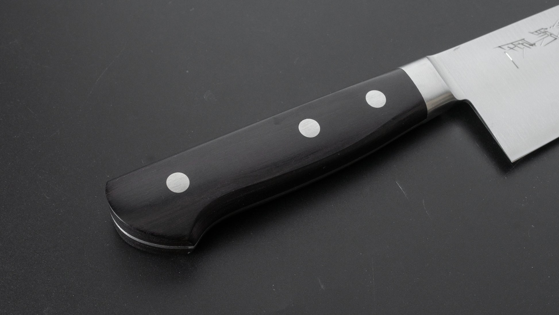 The Santoku is every bit as versatile as a Gyuto, but it’s more at home in everyday cooking. Probably the most used to-go knife at home. It’s easy to handle, super nimble, and great for just about any kitchen task.