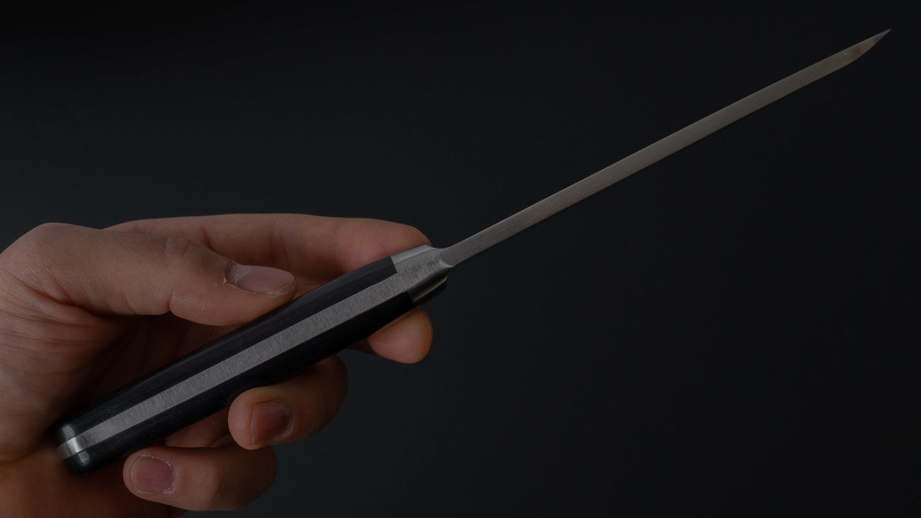 The Deba is the traditional Japanese fish filleting knife. A classic shape that’s been around for centuries. It’s made for breaking down fish and small debas can be used for poultry too. The single-bevel geometry makes it super efficient for filleting, it's strong, low in friction, and capable of taking on an incredibly sharp edge.