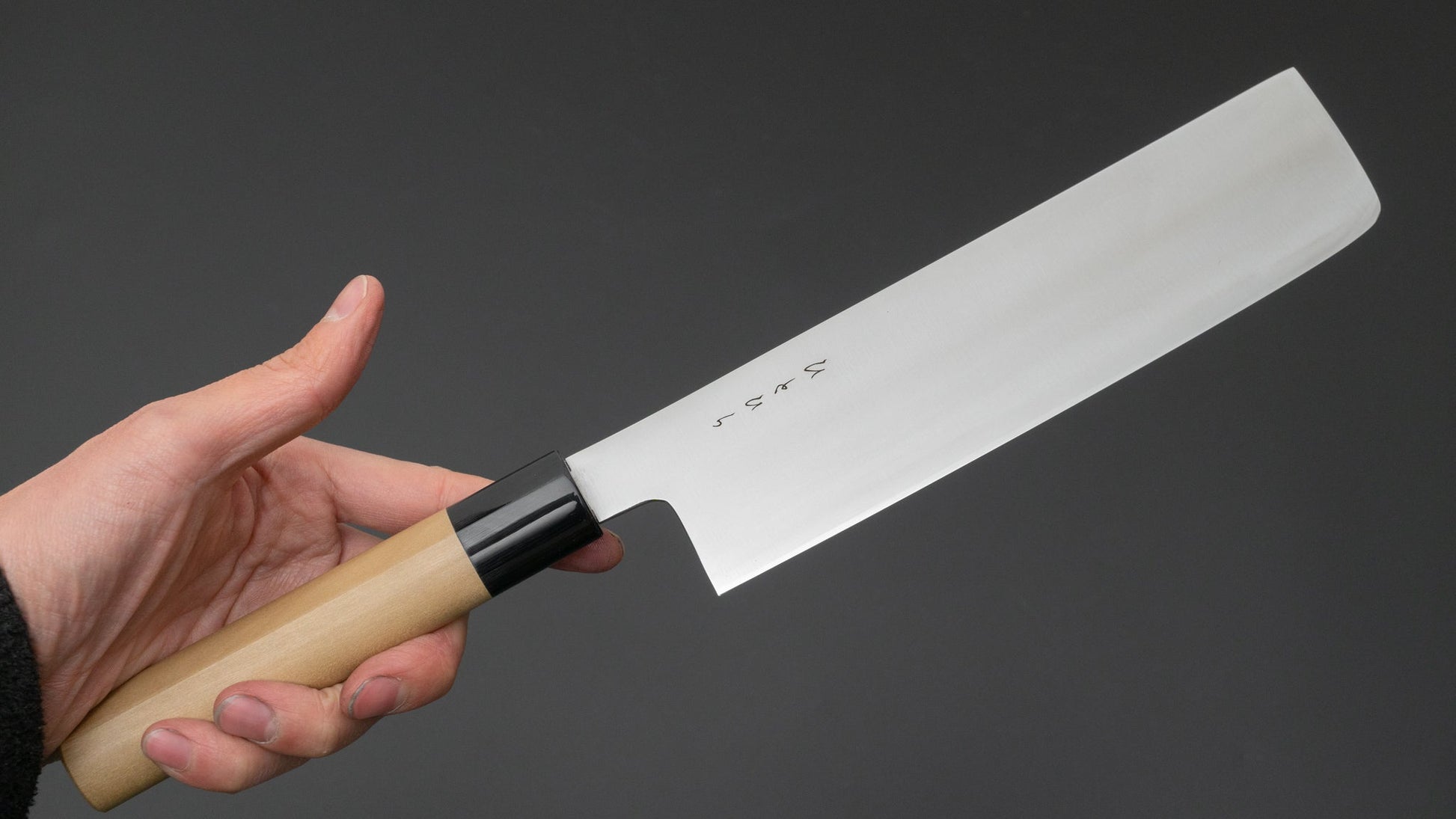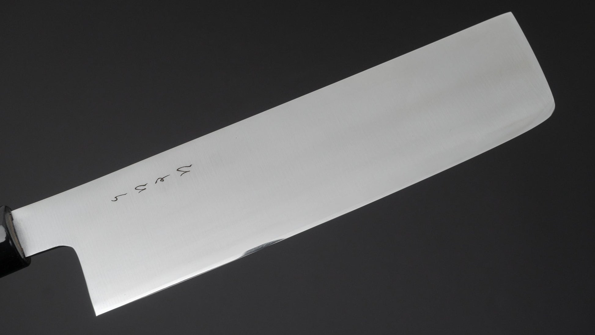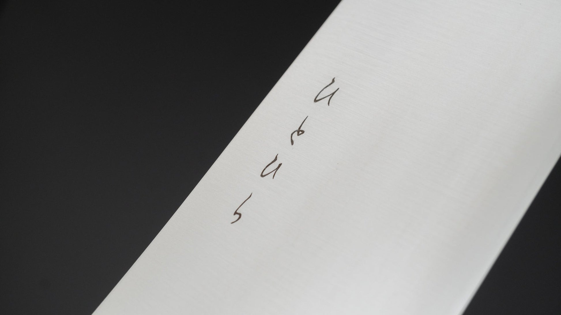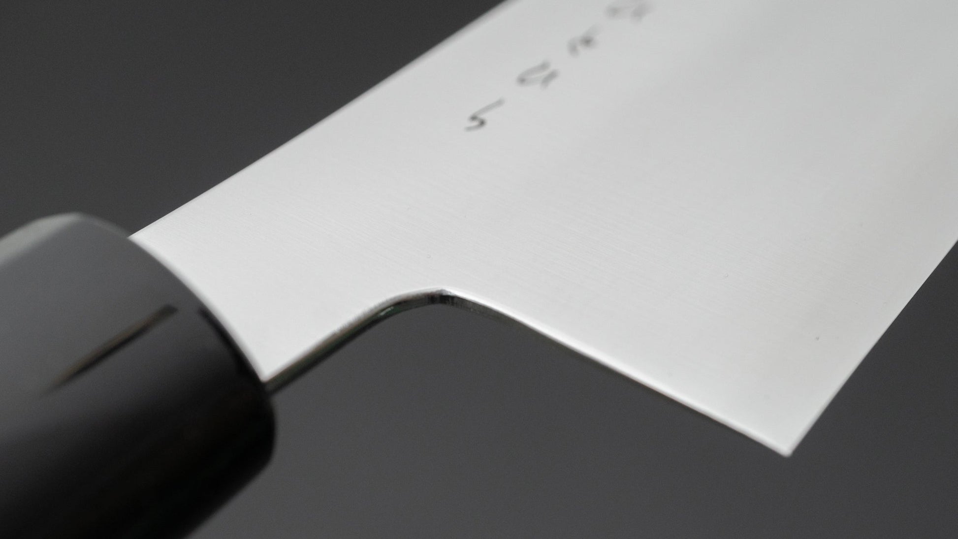 The KH series is a wonderfully pleasant line of knives, with high end fit & finish and made with attention to detail. In Seki, these blades are stamped and heat-treated by local artisans, then meticulously ground, sharpened and completed by the KH brothers. What stands out most is the grind and the refinement of the surface work. The grind is slightly asymmetric—favoring right-handed users—with remarkable precision and a subtle convex on the right side. The cutting performance is smooth and effortless.