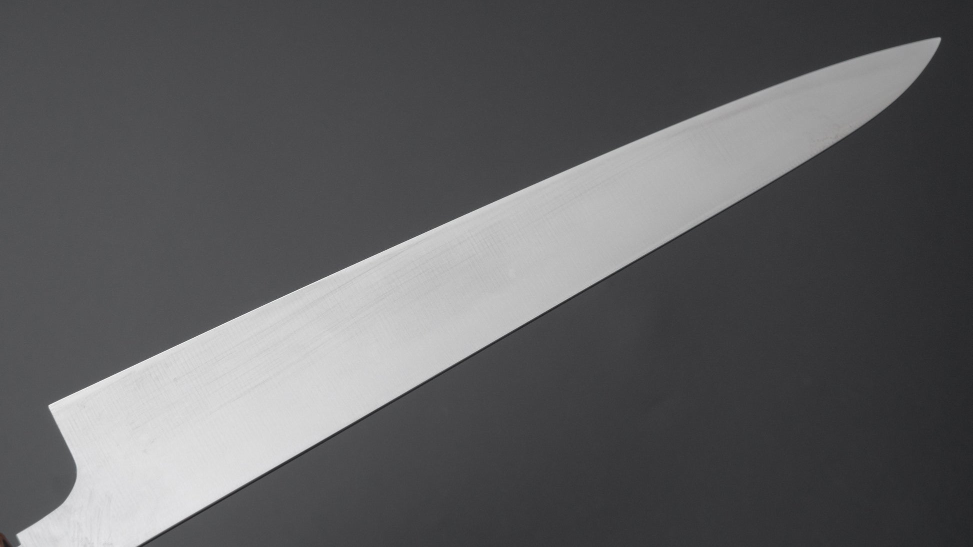 The Japanese slicer. A more specific knife shape ideal for portioning, trimming and finely slicing large cuts of meat, roasts, poultry or fish. Most are symmetrically ground but please check the orientation in the description as some western style Sujihiki are asymmetric.