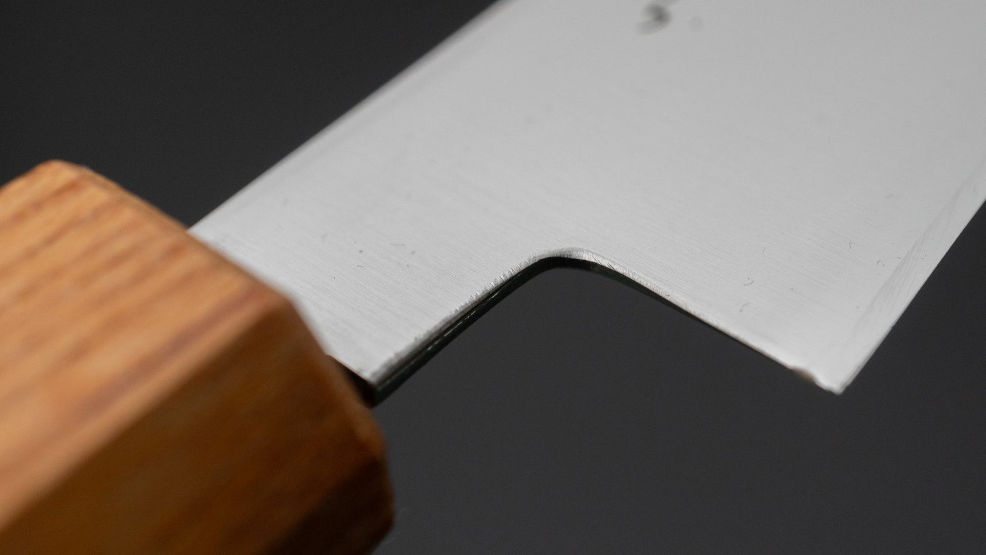 The KH series is a wonderfully pleasant line of knives, with high end fit & finish and made with attention to detail. In Seki, these blades are stamped and heat-treated by local artisans, then meticulously ground, sharpened and completed by the KH brothers. What stands out most is the grind and the refinement of the surface work. The grind is slightly asymmetric—favoring right-handed users—with remarkable precision and a subtle convex on the right side. The cutting performance is smooth and effortless.