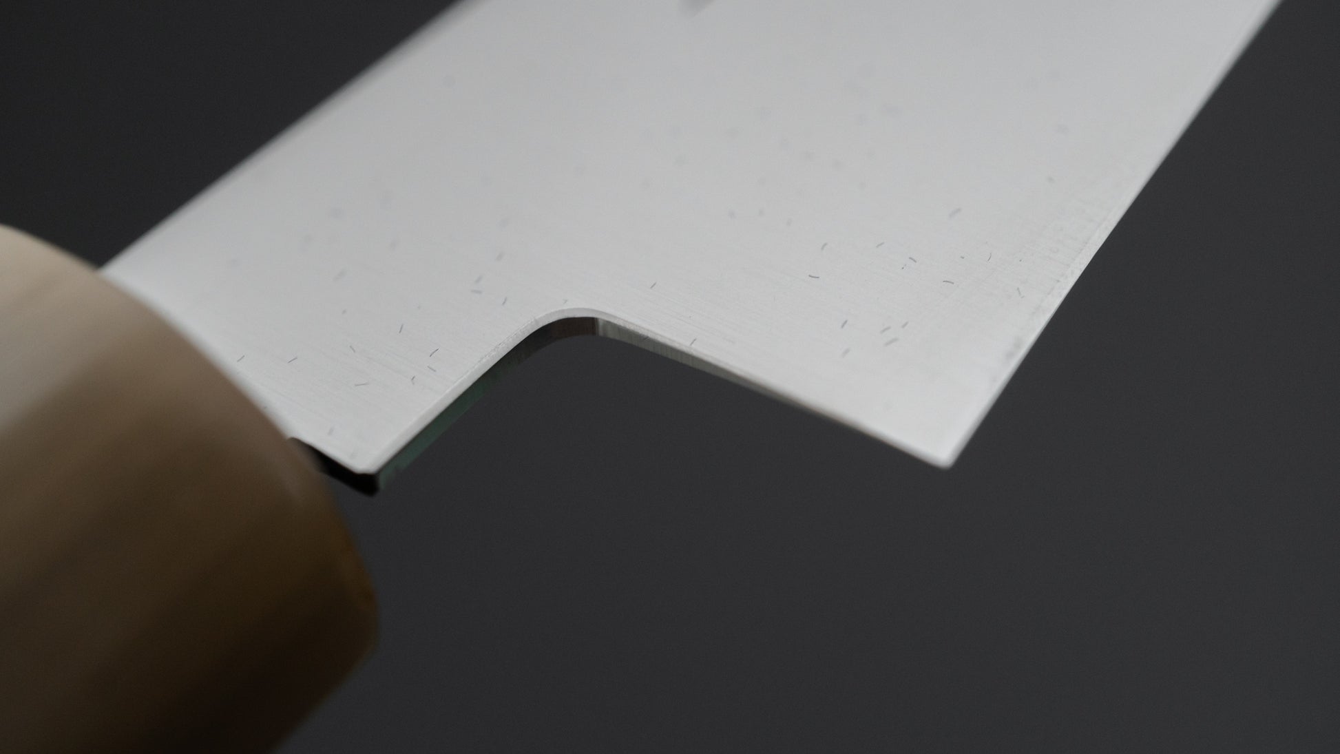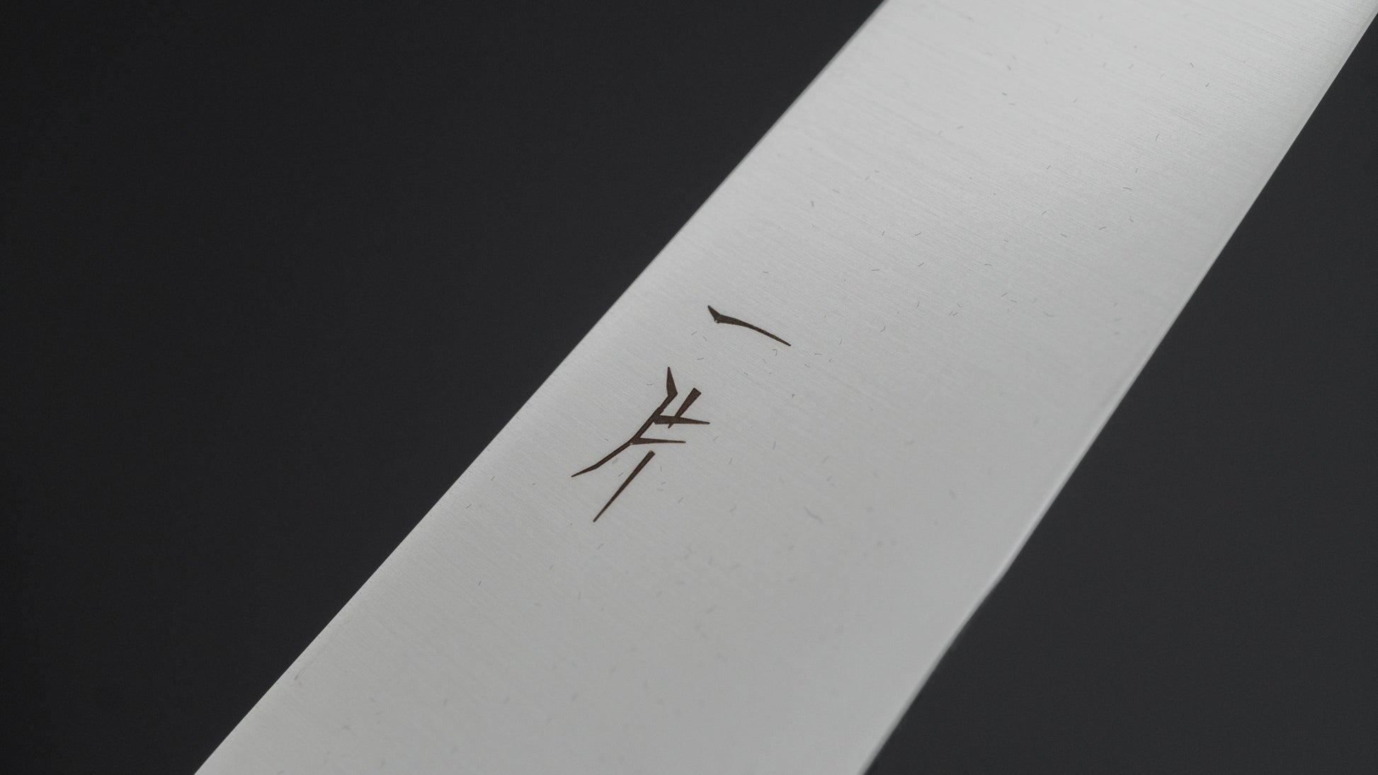 This is a stainless steel knife. Stainless steel gets its name from the inclusion of chromium (10-13%) in the alloy, which forms a protective film that helps prevent rust and corrosion by acting as a barrier between the metal and oxygen. While stainless steel knives are practical, functional, and easier to maintain than carbon steel, they are not completely maintenance-free. With improper care, they can still rust or develop pitting—after all, "stainless" does not mean "stain-free."