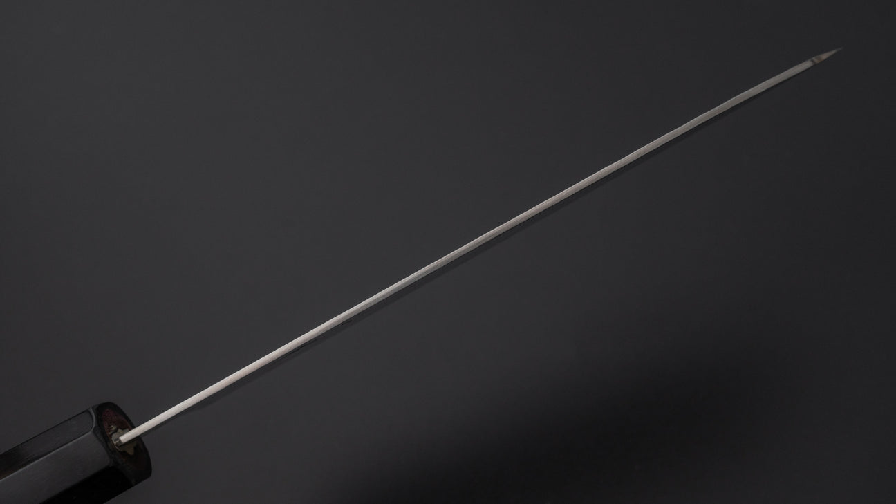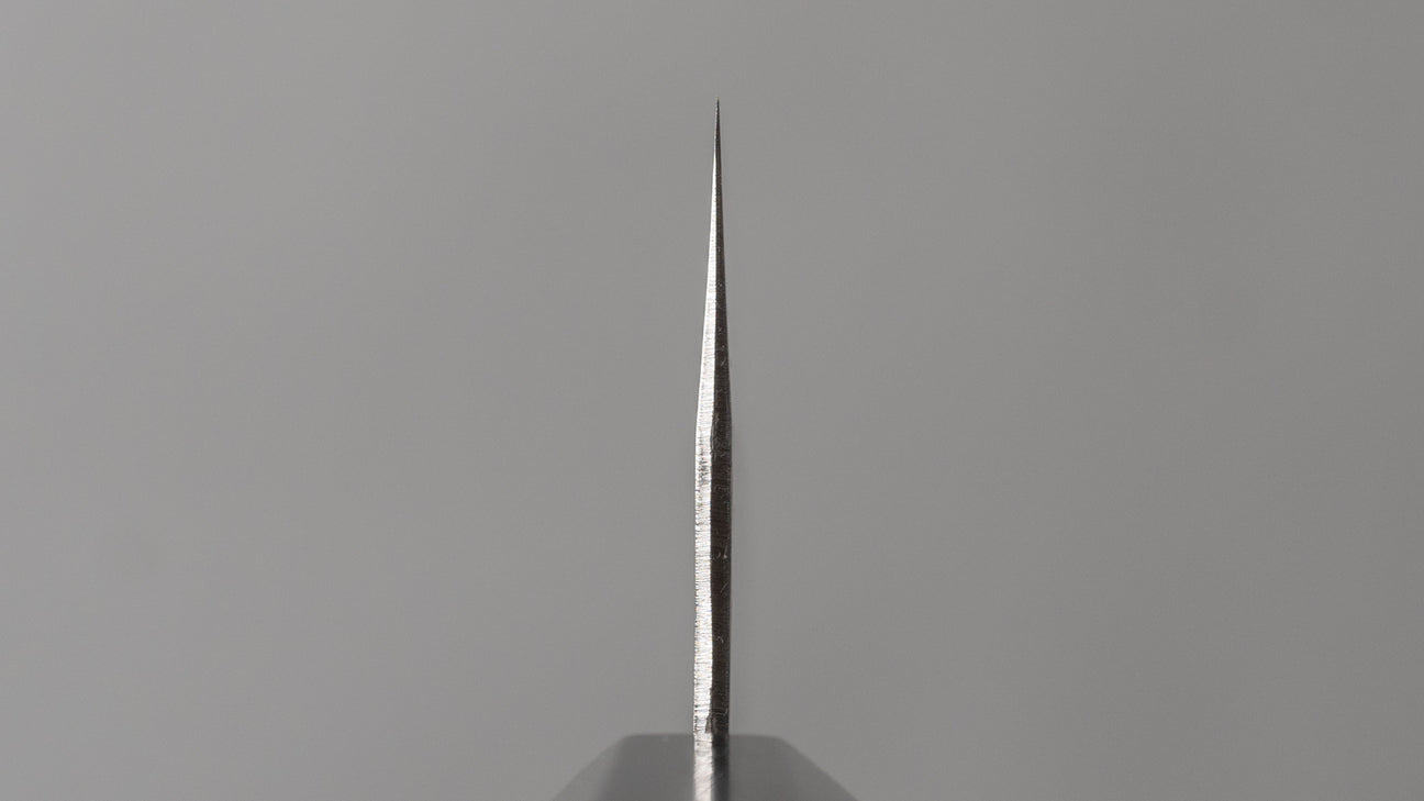 The Santoku is every bit as versatile as a Gyuto, but it’s more at home in everyday cooking. Probably the most used to-go knife at home. It’s easy to handle, super nimble, and great for just about any kitchen task.