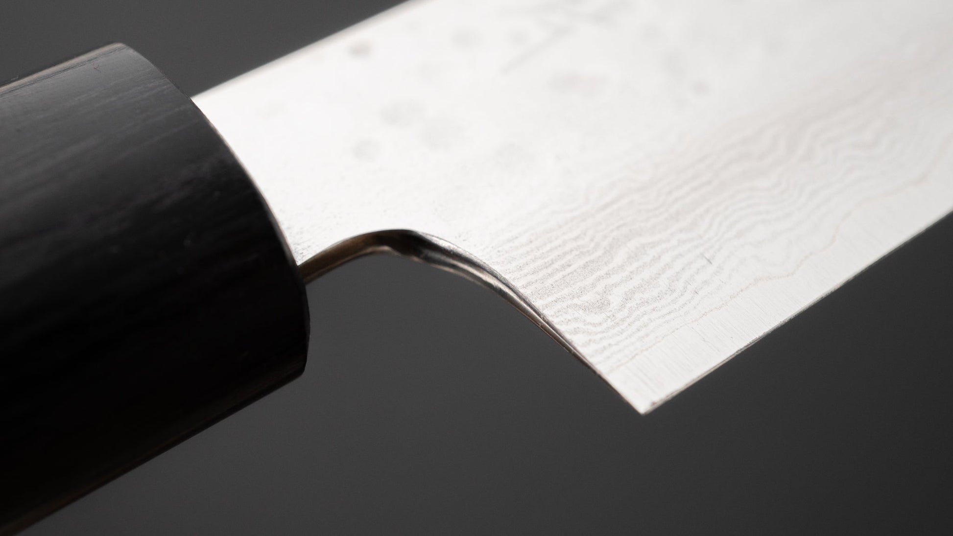 Petty knives (Utilty) have a similar profile as the Gyuto but smaller, commonly ranging from 12 to 15cm. A shape most often used next to any larger all-purpose blade (gyuto & santoku) although there are many households where this is the go-to knife. Very suitable for the smaller cutting tasks such as cleaning, portioning and peeling fruits and vegetables and cleaning smaller cuts of meat or fish.