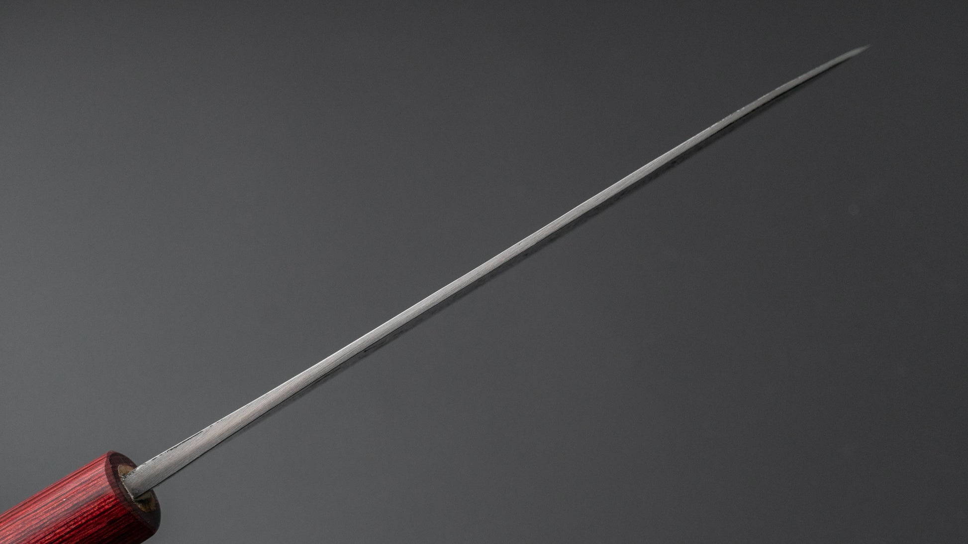 The Santoku is every bit as versatile as a Gyuto, but it’s more at home in everyday cooking. Probably the most used to-go knife at home. It’s easy to handle, super nimble, and great for just about any kitchen task.