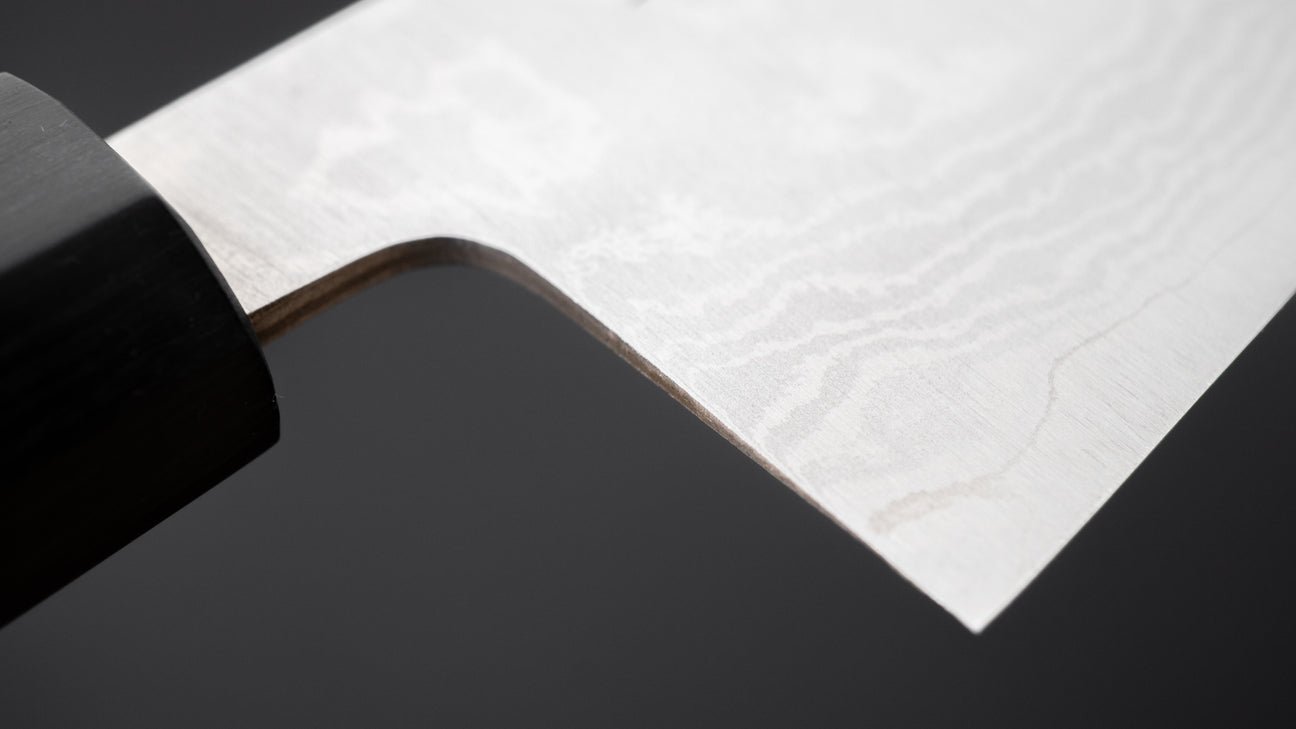 The Santoku is every bit as versatile as a Gyuto, but it’s more at home in everyday cooking. Probably the most used to-go knife at home. It’s easy to handle, super nimble, and great for just about any kitchen task.