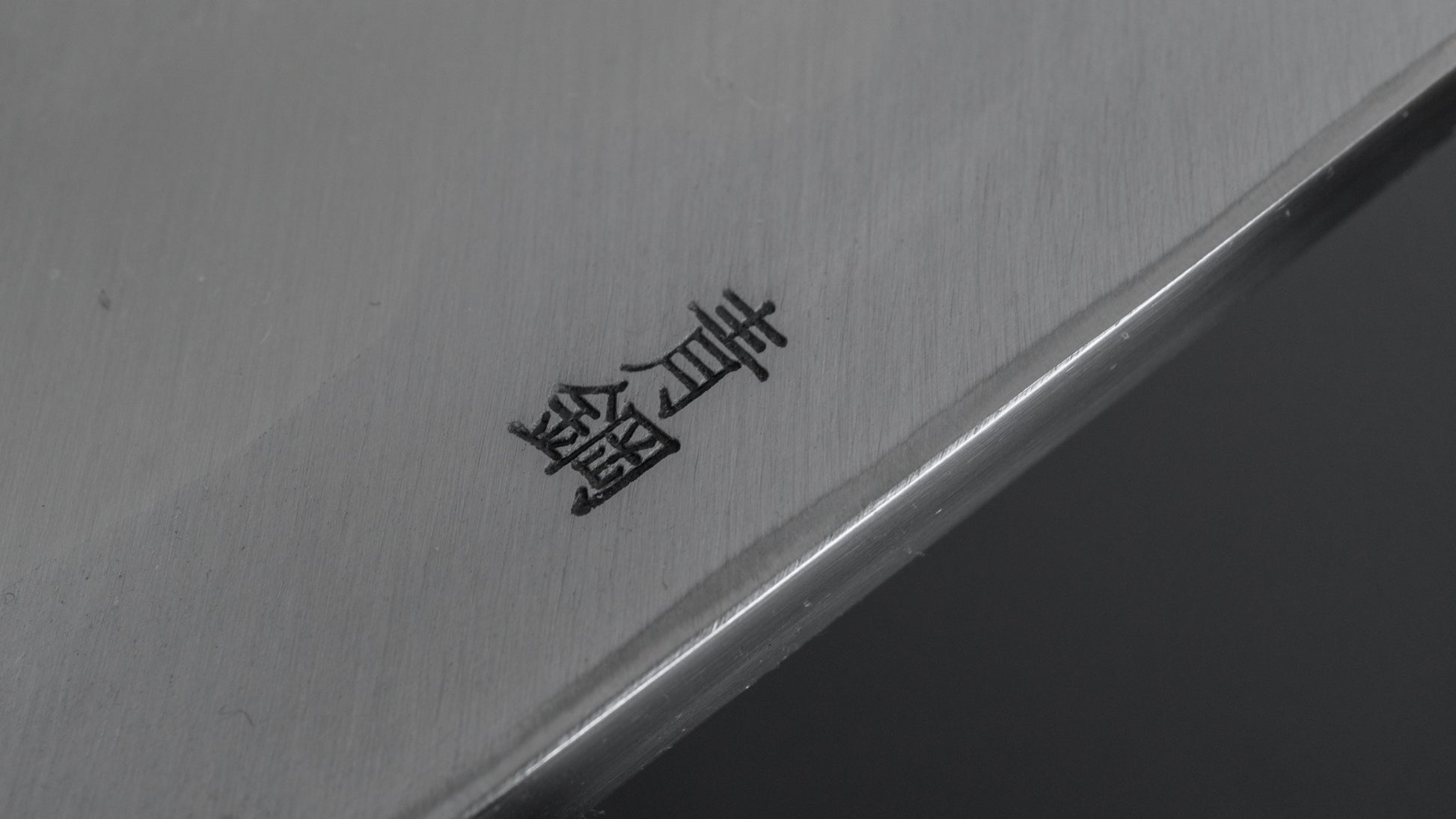 This is a carbon steel knife with a soft stainless steel cladding. Many Japanese knives are constructed with a 3-layer design known as “San Mai,” where a hard, high-quality steel core is sandwiched between two layers of softer steel or iron. In this case, the core is made of carbon steel, while the outer layers, or cladding, are composed of stainless steel. This construction combines the benefits of a carbon steel edge, such as easy sharpening and excellent edge retention, with the added corrosion resistance of stainless steel for the rest of the blade.