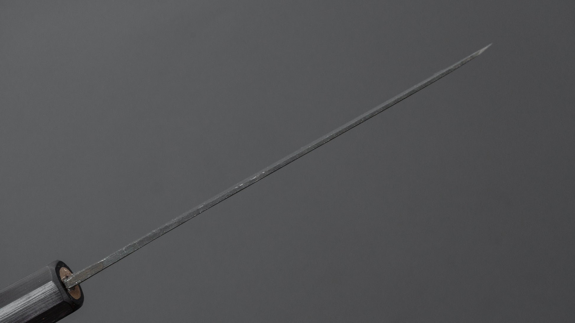 The Santoku is every bit as versatile as a Gyuto, but it’s more at home in everyday cooking. Probably the most used to-go knife at home. It’s easy to handle, super nimble, and great for just about any kitchen task.