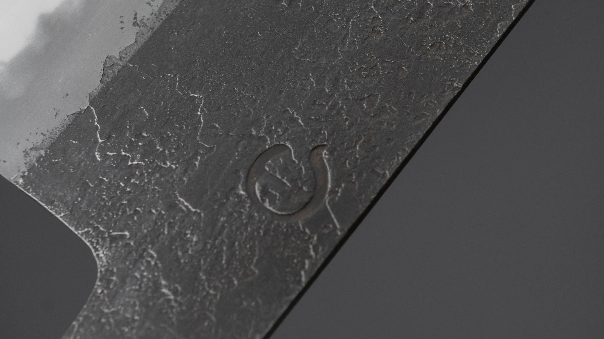 The Hitohira Hinode and Ajikataya series are forged by Sanjo based blacksmith Mutsumi Hinoura. He is the 4th generation blacksmith in the Hinoura family and trained under his father, the highly esteemed master blacksmith Tsukasa Hinoura. He runs a beautifully clean and organized workshop. The blades feature a tsuchime, nashiji or smooth kurouchi finish as is characteristic for Sanjo style knives. His kurouchi is very long lasting and greatly reduces oxidation on the carbon steel blades. The spine is somewhat thick, but tapers down to a very thin tip and similarly towards the edge. The edge retention is one of the best of the white twos we’ve come across. This is not only because of the steel quality but for a good part because of the grind. These knives are trademarked by their narrow wide bevel grind with amazing consistency. With this flat geometry it is also a treat to thin and polish on stones. These knives have a steady feel to them, they’re strong but thin behind the edge for super clean and precise cuts. We carry multiple knives by Hinoura San, a variety of shapes and finishes. Restocks expected every 5-6 months.
