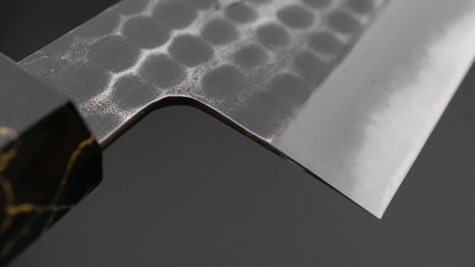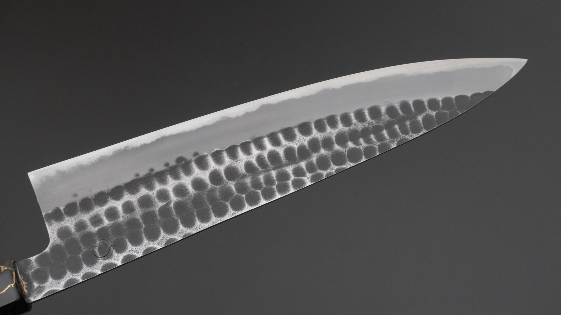 The Hitohira Hinode and Ajikataya series are forged by Sanjo based blacksmith Mutsumi Hinoura. He is the 4th generation blacksmith in the Hinoura family and trained under his father, the highly esteemed master blacksmith Tsukasa Hinoura. He runs a beautifully clean and organized workshop. The blades feature a tsuchime, nashiji or smooth kurouchi finish as is characteristic for Sanjo style knives. His kurouchi is very long lasting and greatly reduces oxidation on the carbon steel blades. The spine is somewhat thick, but tapers down to a very thin tip and similarly towards the edge.