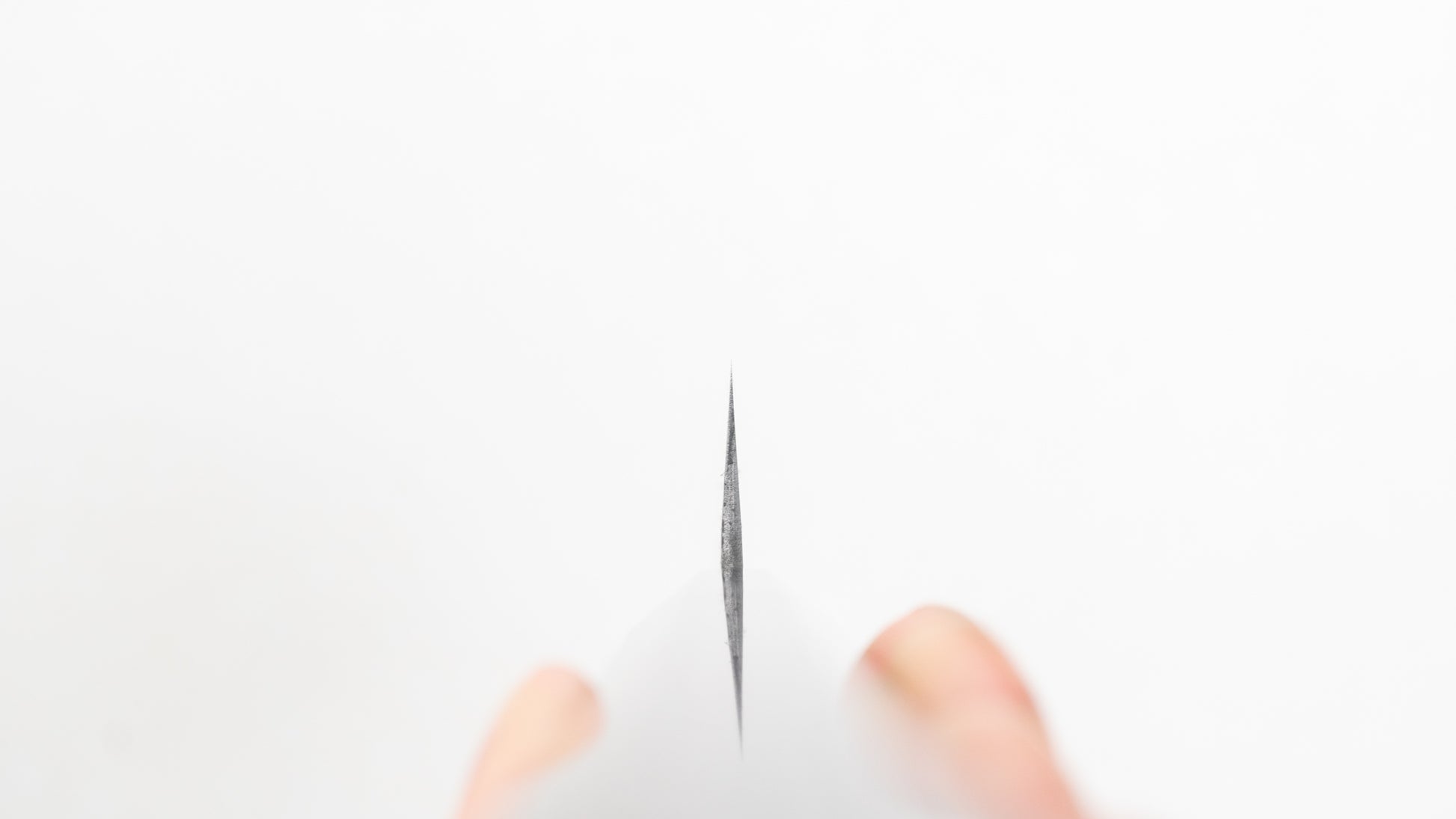 The edge retention is one of the best of the white twos we’ve come across. This is not only because of the steel quality but for a good part because of the grind. These knives are trademarked by their narrow wide bevel grind with amazing consistency. With this flat geometry it is also a treat to thin and polish on stones.