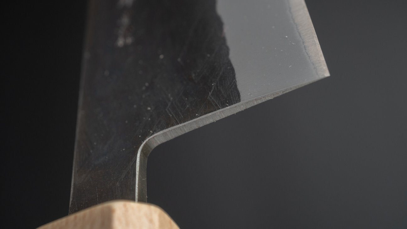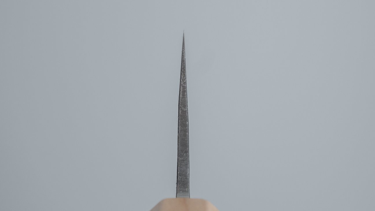 The Santoku is every bit as versatile as a Gyuto, but it’s more at home in everyday cooking. Probably the most used to-go knife at home. It’s easy to handle, super nimble, and great for just about any kitchen task.