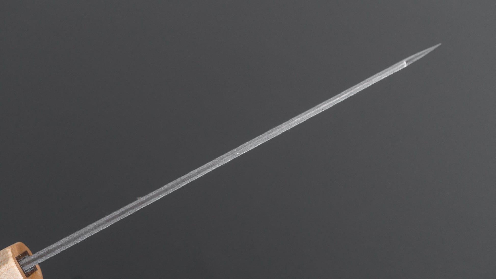 The Honesuki is a Japanese-style butchery knife, mainly used for breaking down and deboning poultry and larger cuts of meat. The Honesuki Kaku version is more suited to poultry work. It has a pronounced heel that makes it great for cutting through cartilage while the Maru version, with its more rounded profile, works better for other types of meat but isn’t quite as efficient on poultry. Many Honesuki knives have an asymmetric grind, so make sure to check the hand orientation before choosing one.