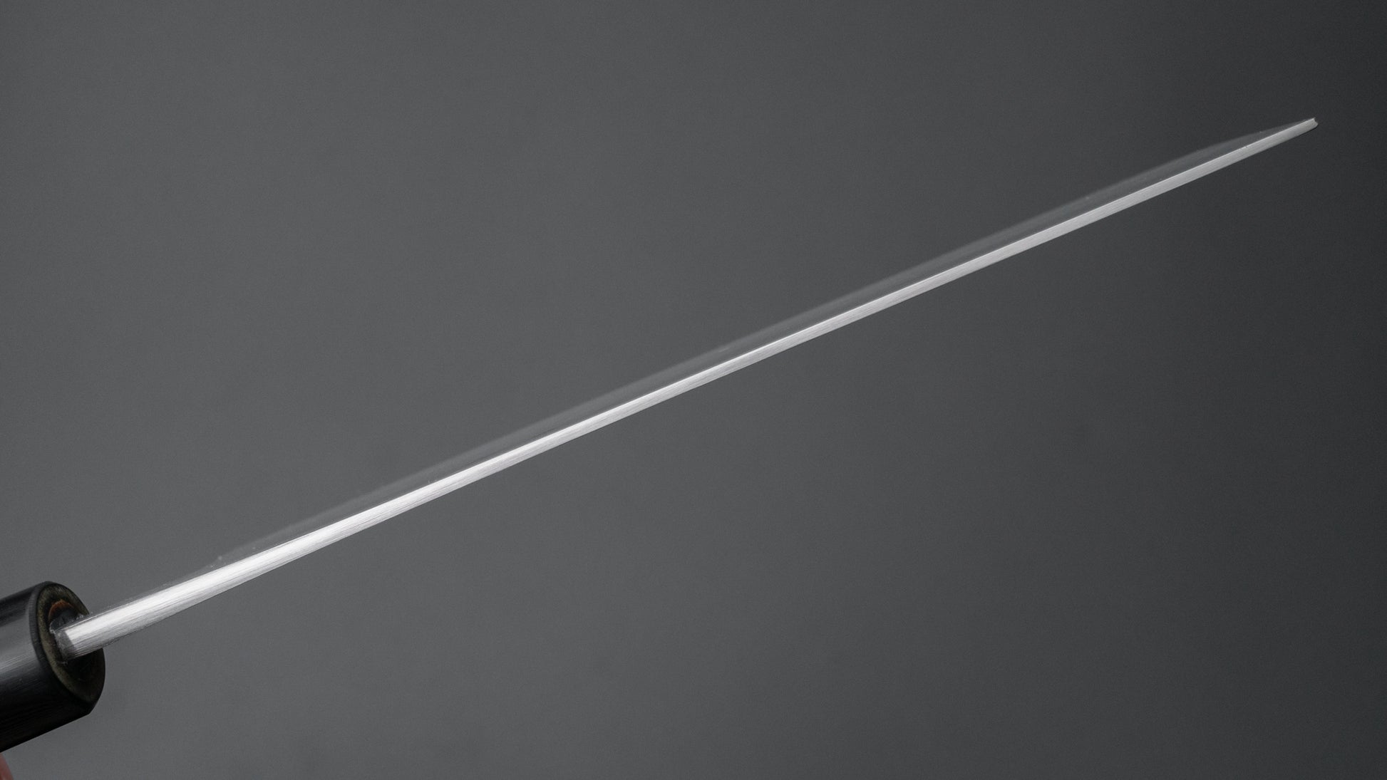 The Hitohira TD series consists of sturdy handmade knives from Sanjo, Niigata. All the knives we carry in the TD series are hand forged which makes for a noticeable improvement in steel quality. Very good prices for hand-forged knives. They come in kurouchi, tsuchime, nashiji and sometimes migaki finished stainless cladding on either Blue #2 or SLD core steel. Like many Sanjo made knives, they have spines that are somewhat thicker towards the neck, making for a nice grip and a little more weight. Very well made and dependable knives.