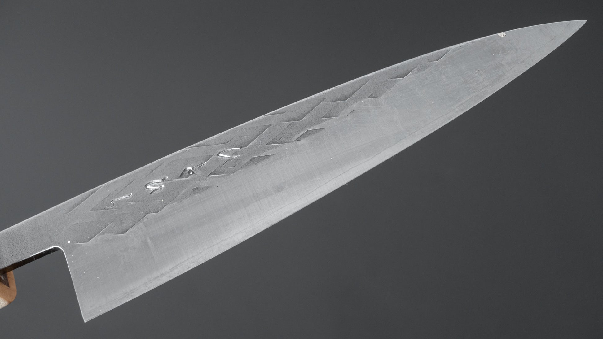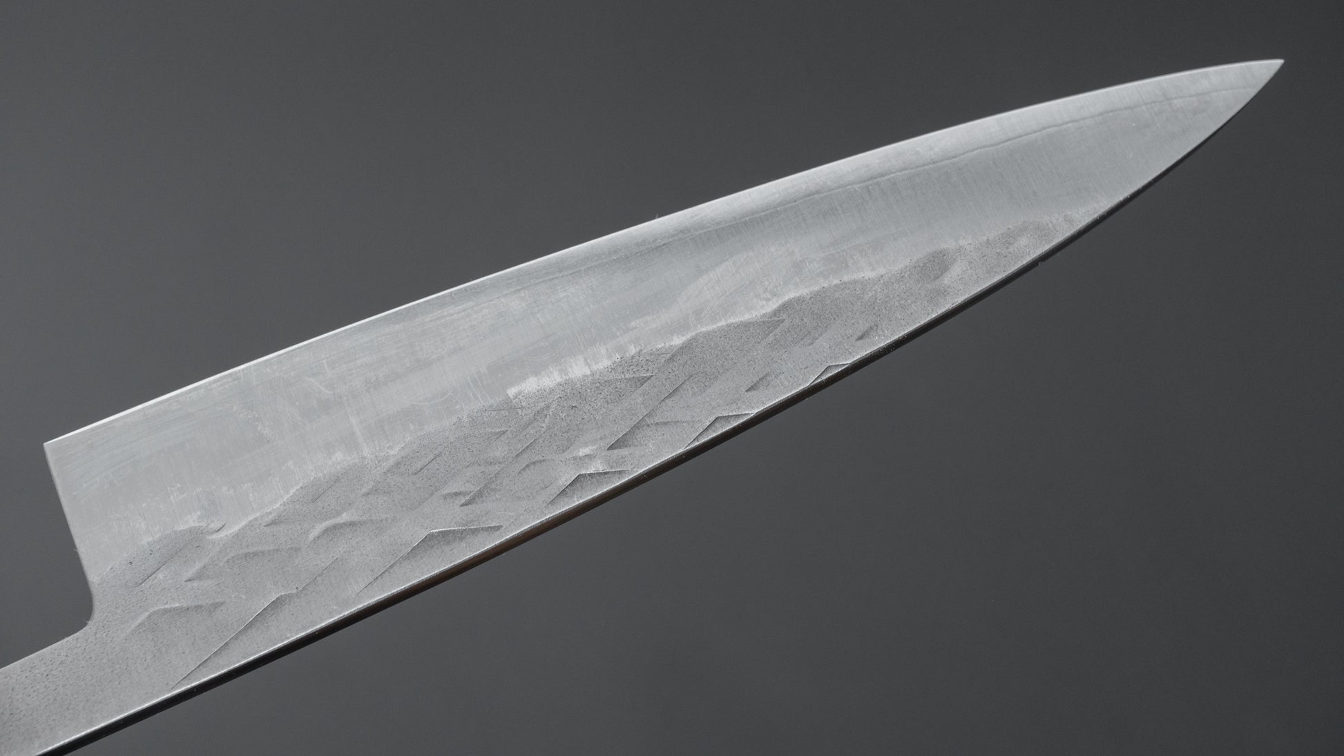 The Hitohira TD series consists of sturdy handmade knives from Sanjo, Niigata. All the knives we carry in the TD series are hand forged which makes for a noticeable improvement in steel quality. Very good prices for hand-forged knives. They come in kurouchi, tsuchime, nashiji and sometimes migaki finished stainless cladding on either Blue #2 or SLD core steel. Like many Sanjo made knives, they have spines that are somewhat thicker towards the neck, making for a nice grip and a little more weight. Very well made and dependable knives.