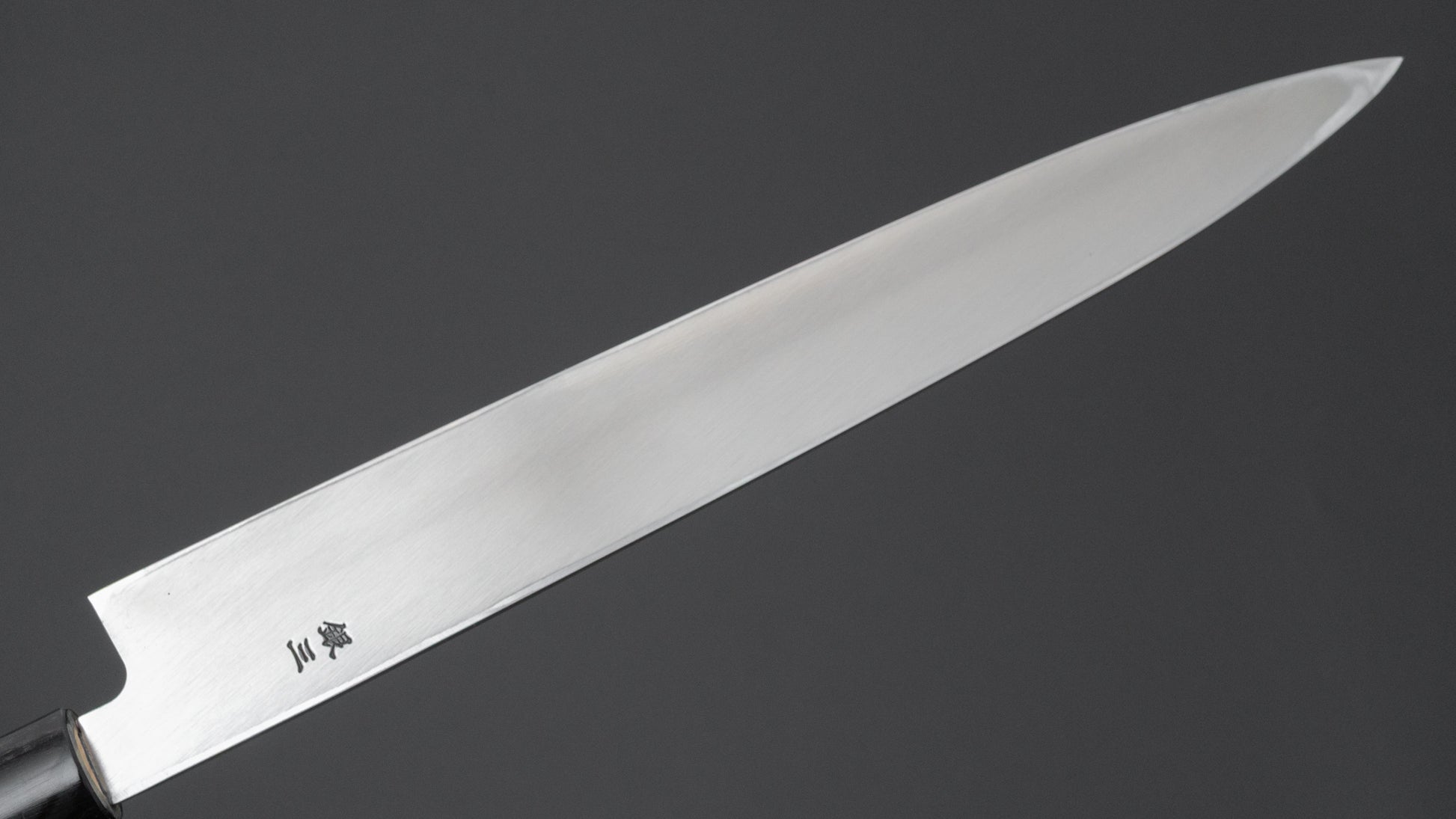 The traditional Japanese slicer. The king of knives and ofter referred to as ’Sushi knife’ it is used for slicing boneless protein. More specific and less versatile compared to the Sujihiki, the performance of the properly sharpened Yanagiba will yield much higher quality results due to their geometry and sharpness. Characteristics in steel are pronounced in single bevel knives and different sharpeners make for much variety.