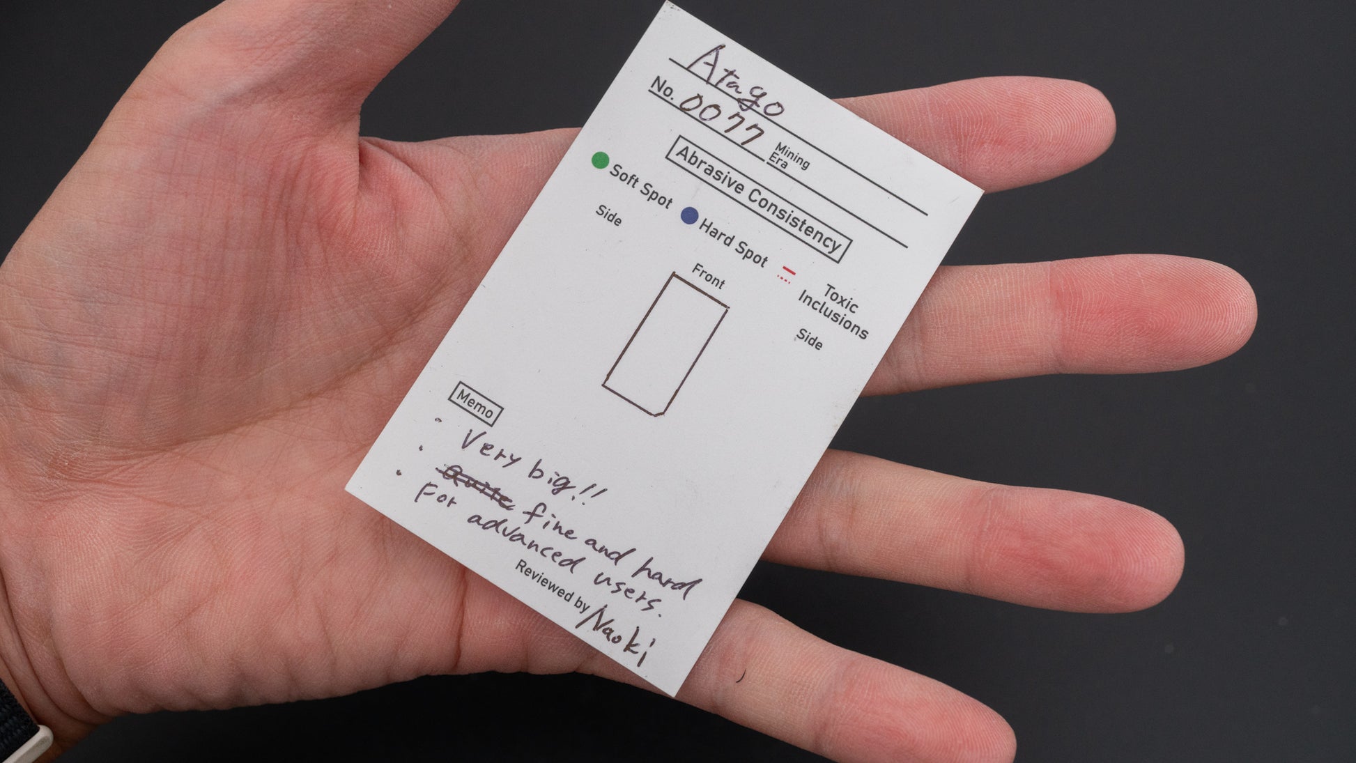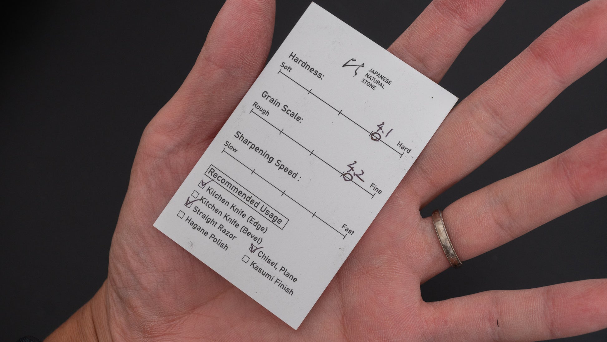 Keeping your stone flat is important, but natural stones typically require flattening less often than synthetic ones. When flattening, use the finest flattener possible to minimize unnecessary material removal. After flattening, we recommend polishing the surface with a nagura stone to enhance performance and surface smoothness.
