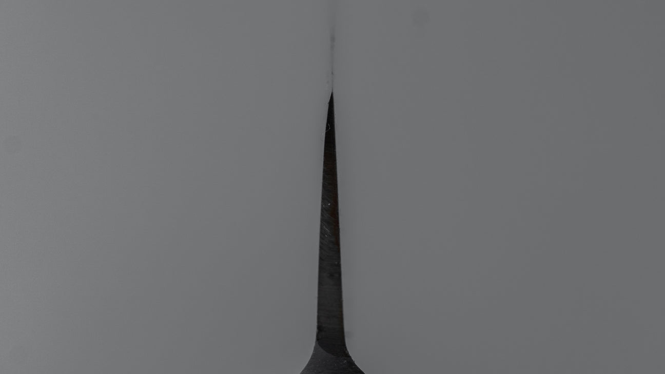 Caring for a carbon steel knife is straightforward and similar to other knives. Store it clean and dry, avoid using the dishwasher, and never leave it to air-dry. Also, steer clear of cutting extremely hard items like frozen food or bones. During use, it’s important to keep the knife dry—wiping it down with a cloth or towel is usually enough. If a carbon steel knife is not properly maintained, it can rust. While rust can be removed, it's best to prevent it from occurring.