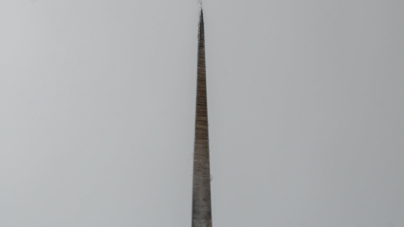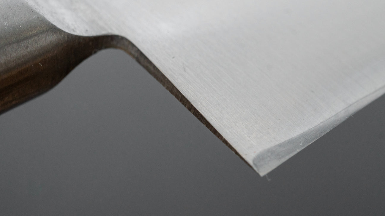 The Japanese slicer. A more specific knife shape ideal for portioning, trimming and finely slicing large cuts of meat, roasts, poultry or fish. Most are symmetrically ground but please check the orientation in the description as some western style Sujihiki are asymmetric.