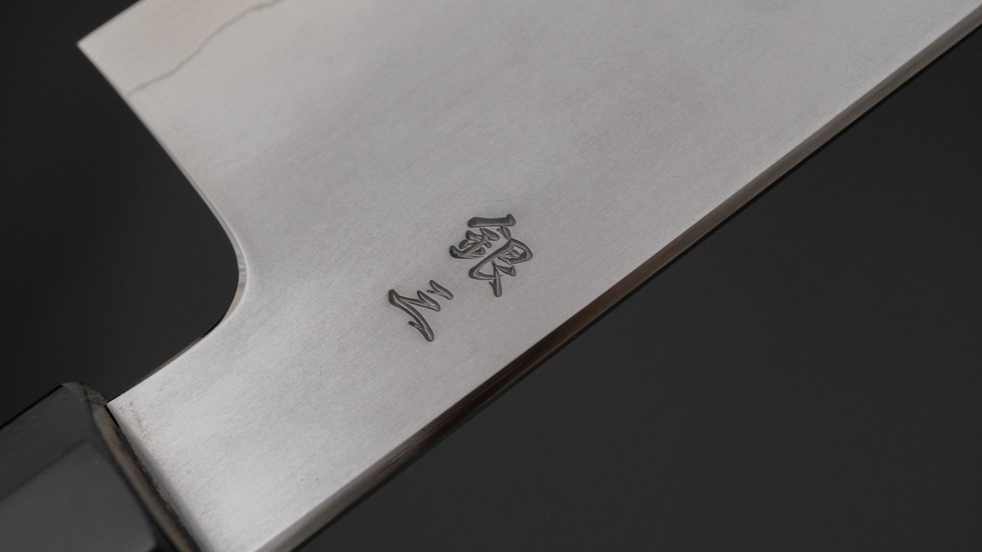 Tetsujin is the brand name for knives made by blacksmith Toru Tamura and sharpener Naohito Myojin. Two highly skilled perfectionist craftsmen and both some of the finest artisans of their generation. Tomura Sans blue steel has a hardness of around 63-64 HRC, very resilient to chipping and easy to touch up and with excellent edge retention.