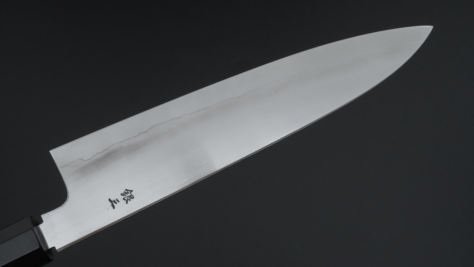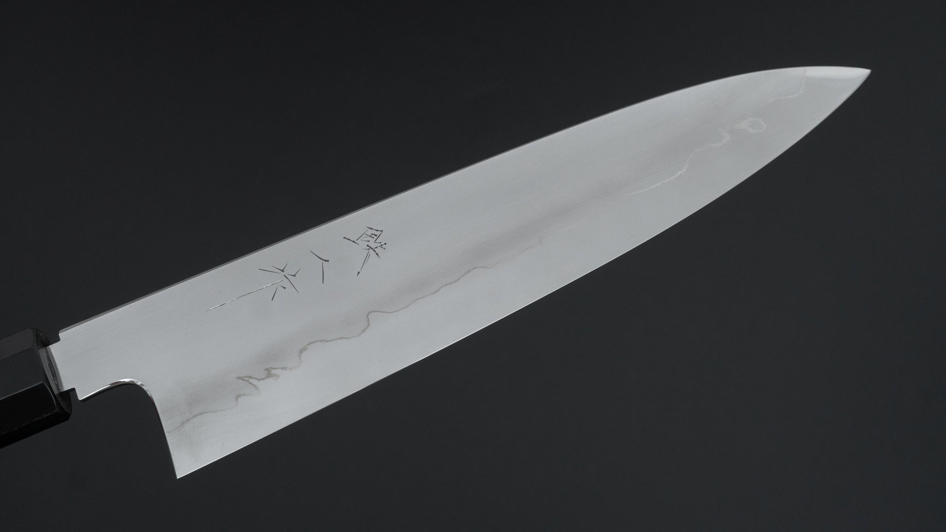 Myojin Sans sharpening is characterized by very even, thin convex (hamaguri) bevels, superior cutting performance, strong geometry and outstanding polish.
