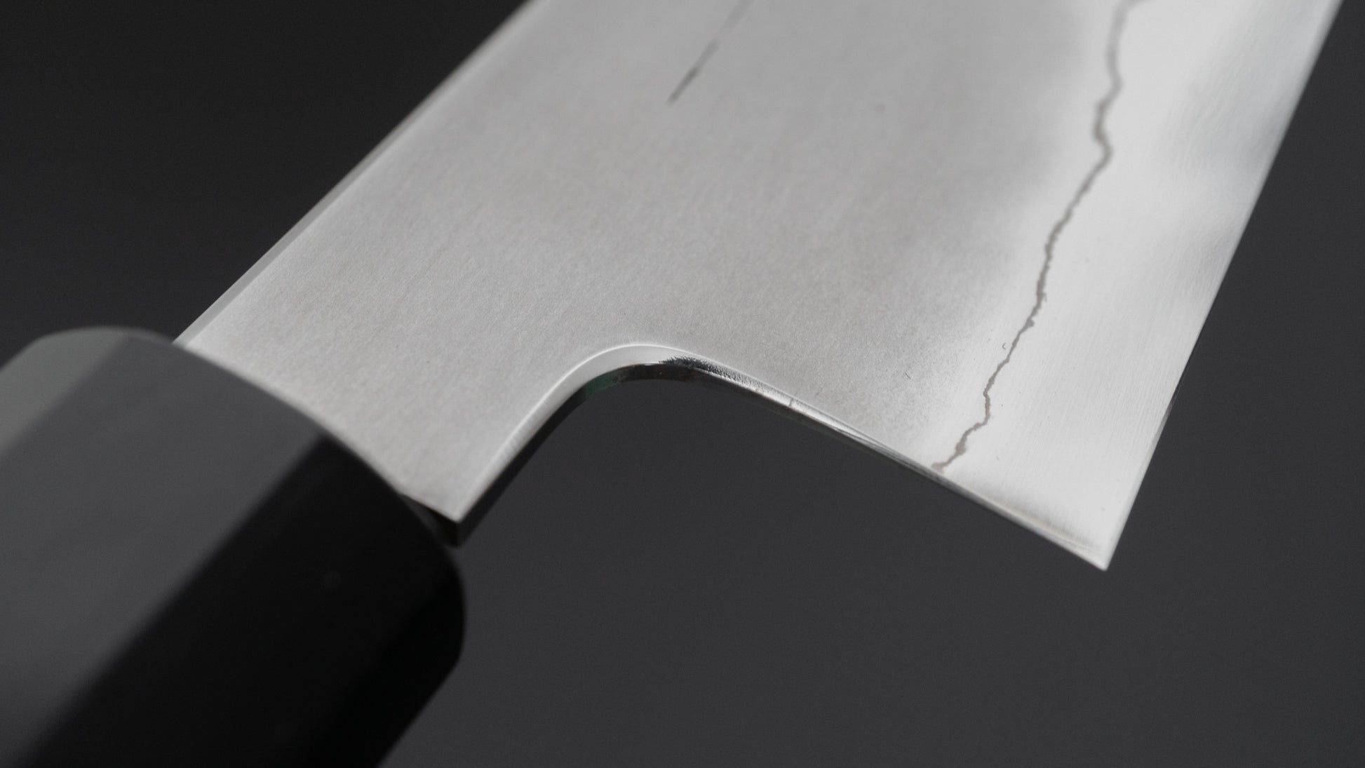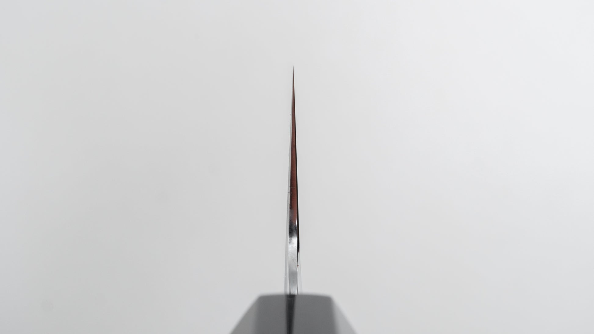 Myojin Sans sharpening is characterized by very even, thin convex (hamaguri) bevels, superior cutting performance, strong geometry and outstanding polish.