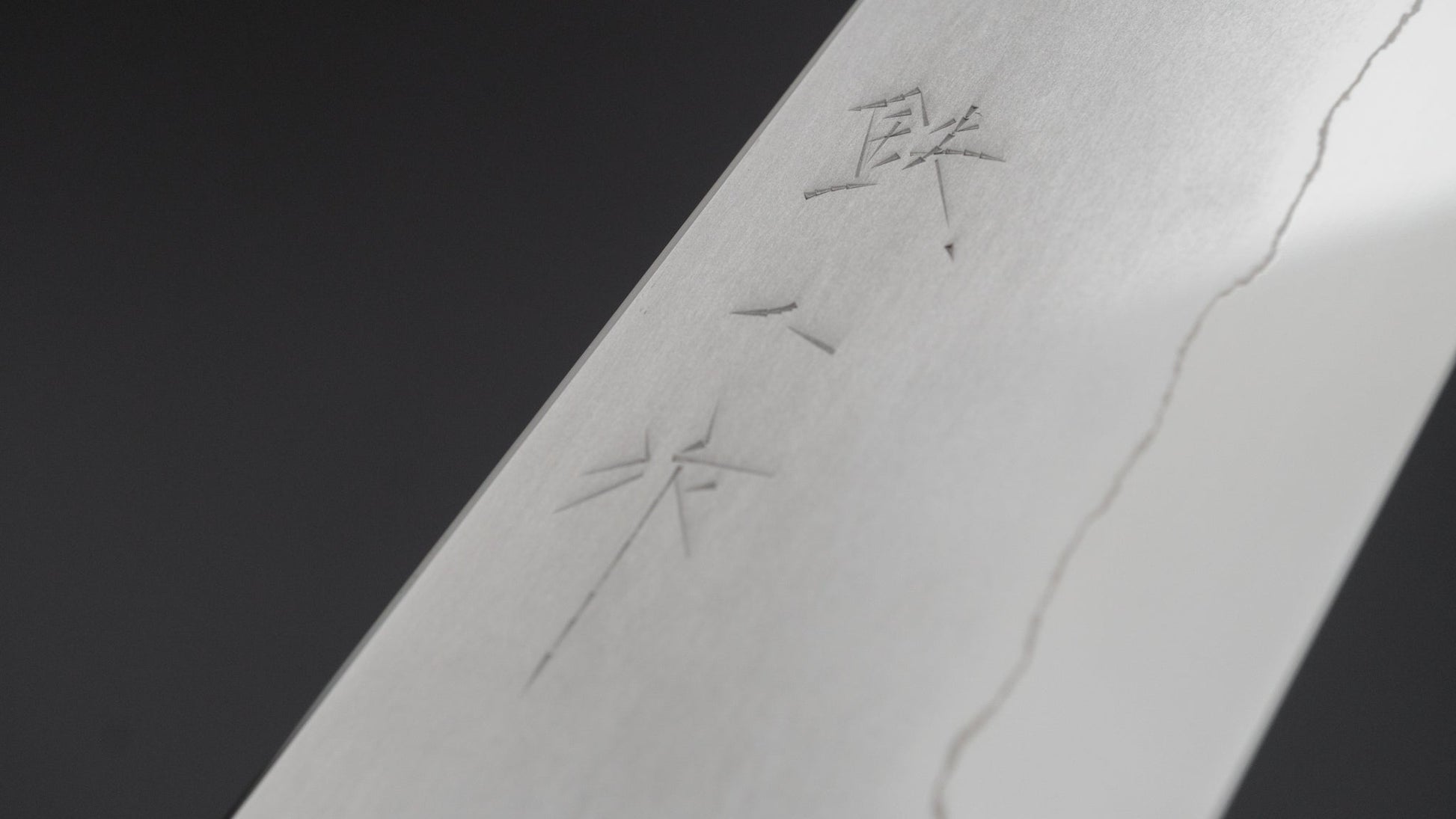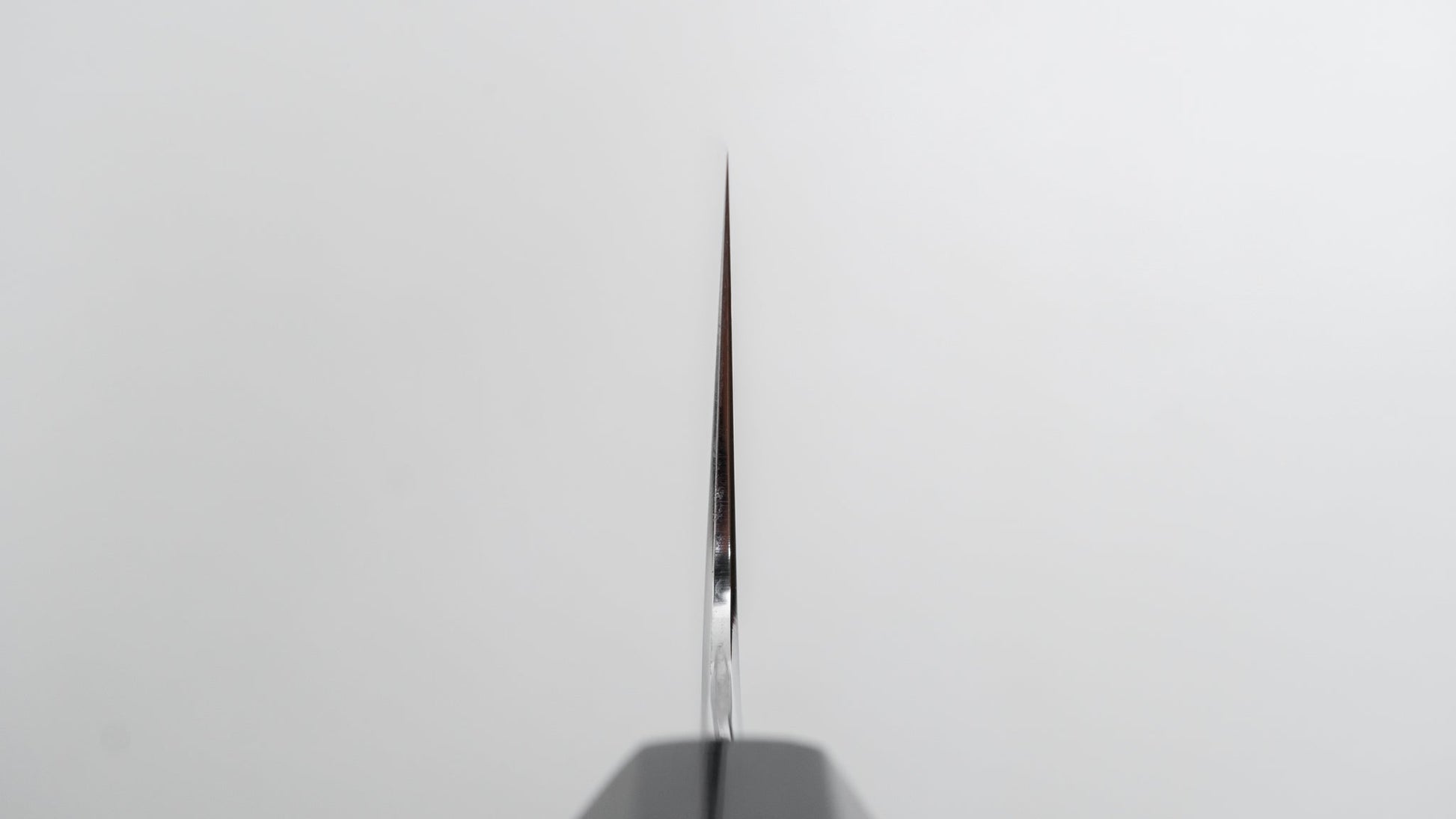 Myojin Sans sharpening is characterized by very even, thin convex (hamaguri) bevels, superior cutting performance, strong geometry and outstanding polish.